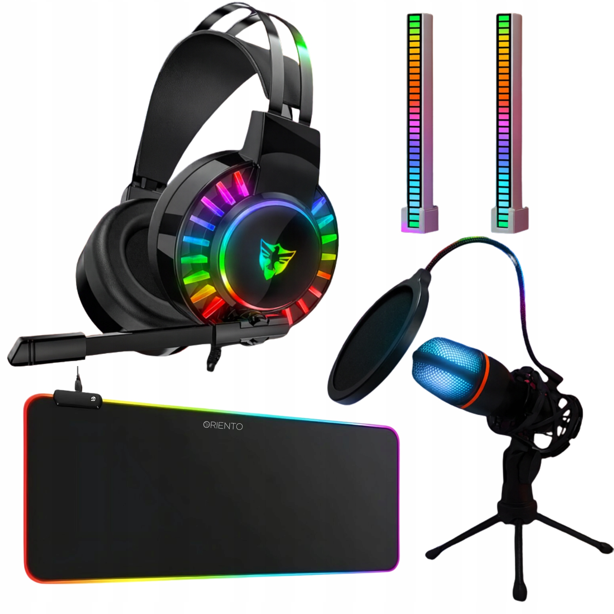 🎧🎤 ИГРОВОЙ НАБОР RGB — НАУШНИКИ 7.1, СТУДИЙНЫЙ МИКРОФОН RGB USB С ПОДСТАВКОЙ, СВЕТОДИОДНАЯ ПОДСТАВКА XL, СВЕТОДИОДНАЯ ЛЕНТА С РЕАКТИВНЫМ ЗВУКОМ 🎮✨