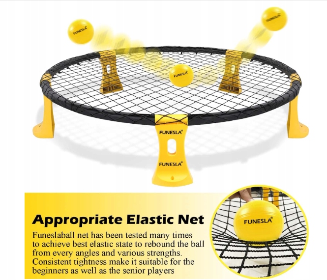 Набор для игры на открытом воздухе Funesla Roundnet, стандартный набор из 3 мячей — улучшенная игровая сетка FuneslaBall для сада, пляжа, парка и помещения