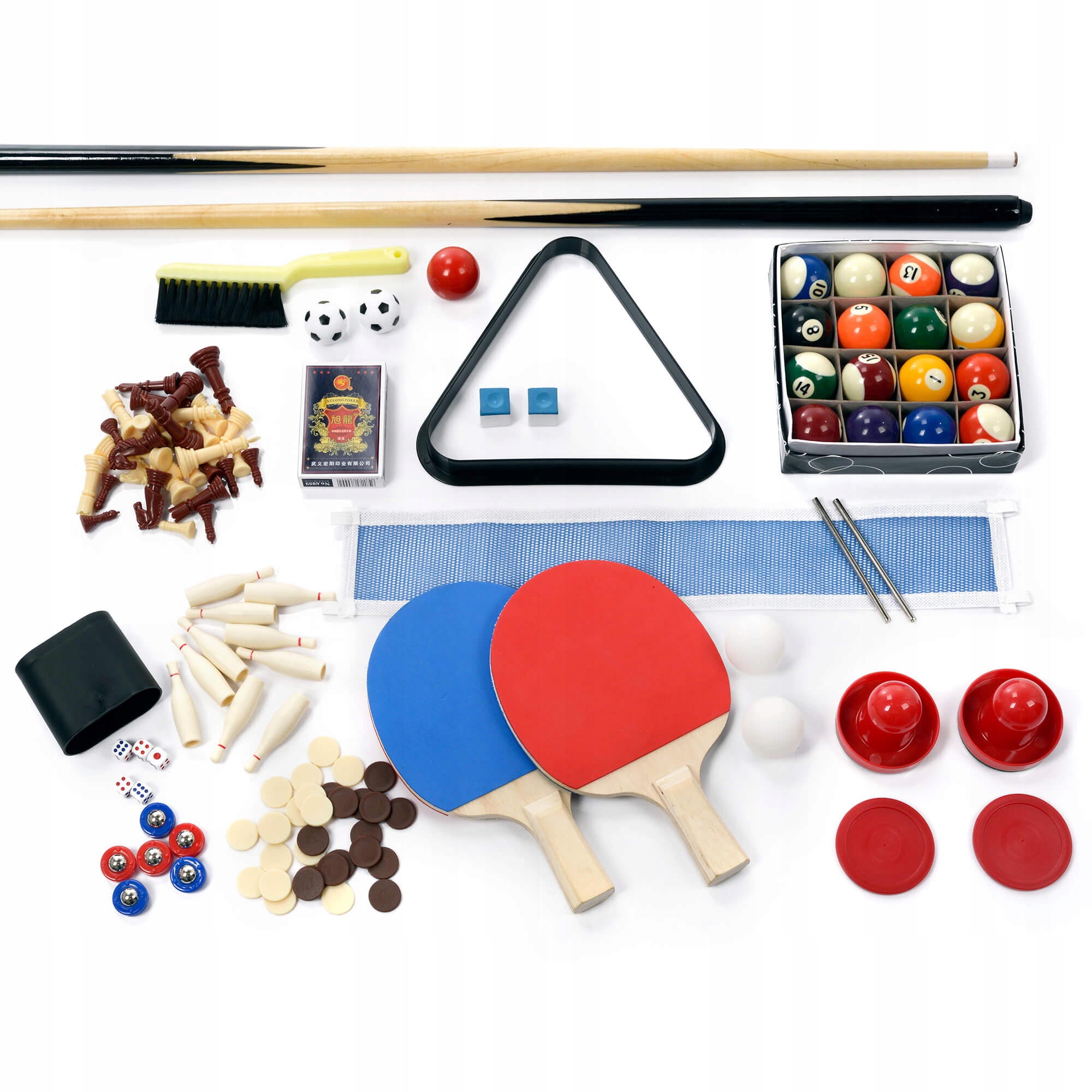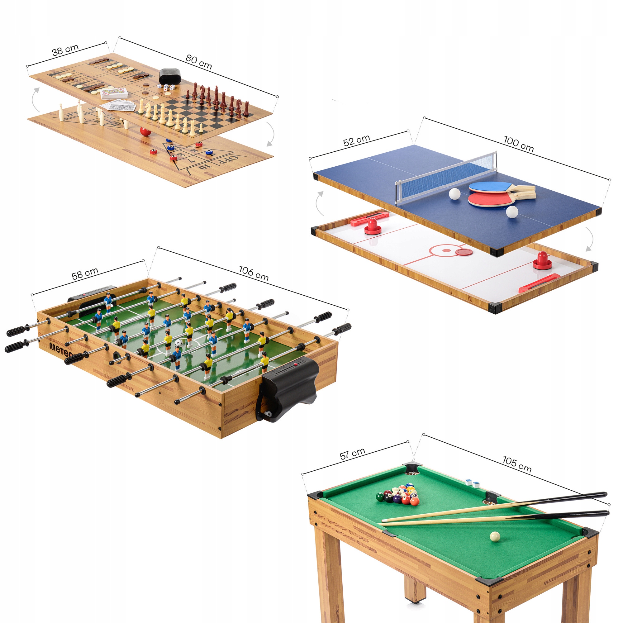 - Модель: 10 в 1 - карты, кости, нарды, шаффл, боулинг, шашки, шахматы, настольный теннис, аэрохоккей, бильярд, настольный футбол