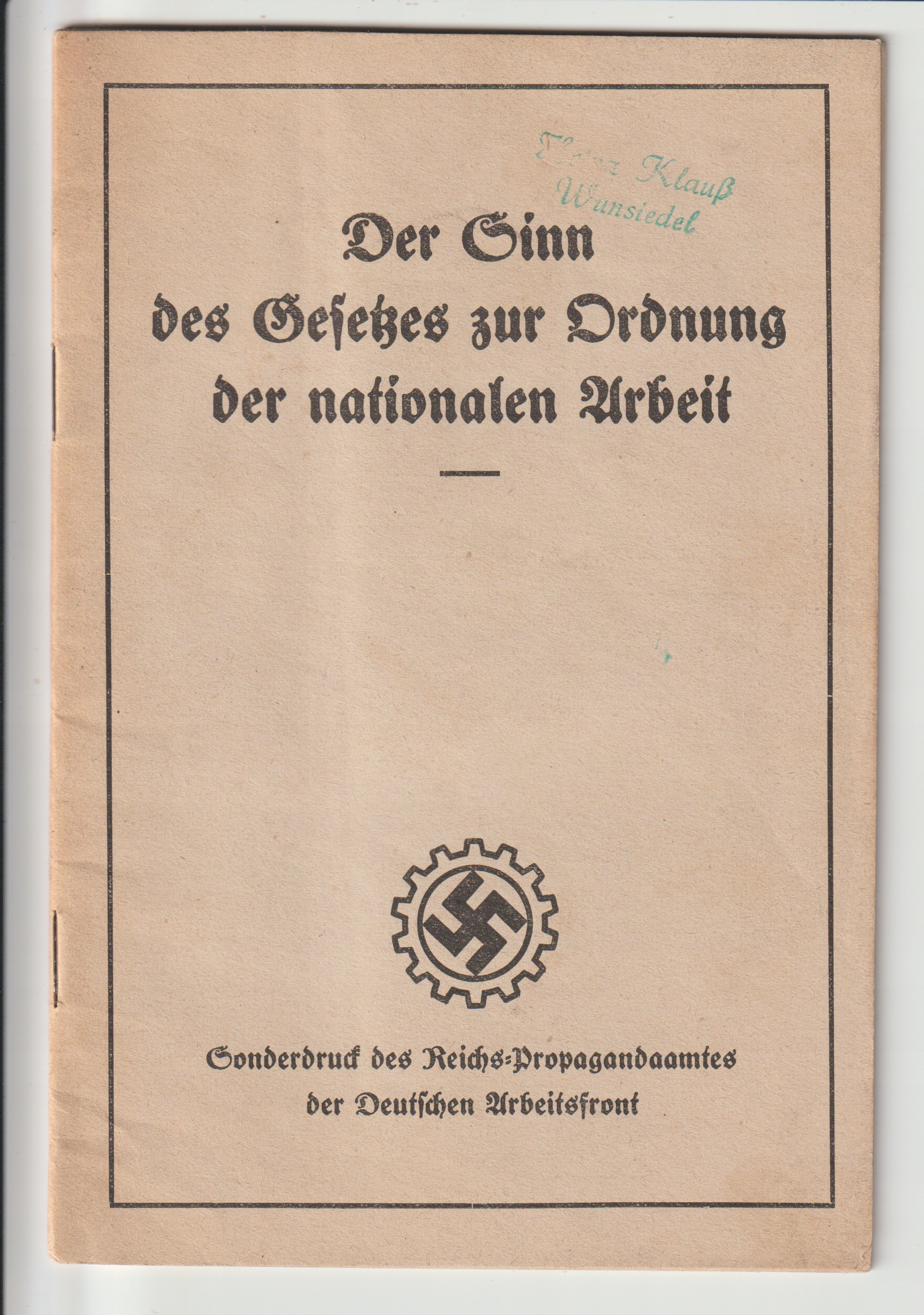 III Rzesza DAF sens ustawy broszura 26 stron 1933 ORGINAL