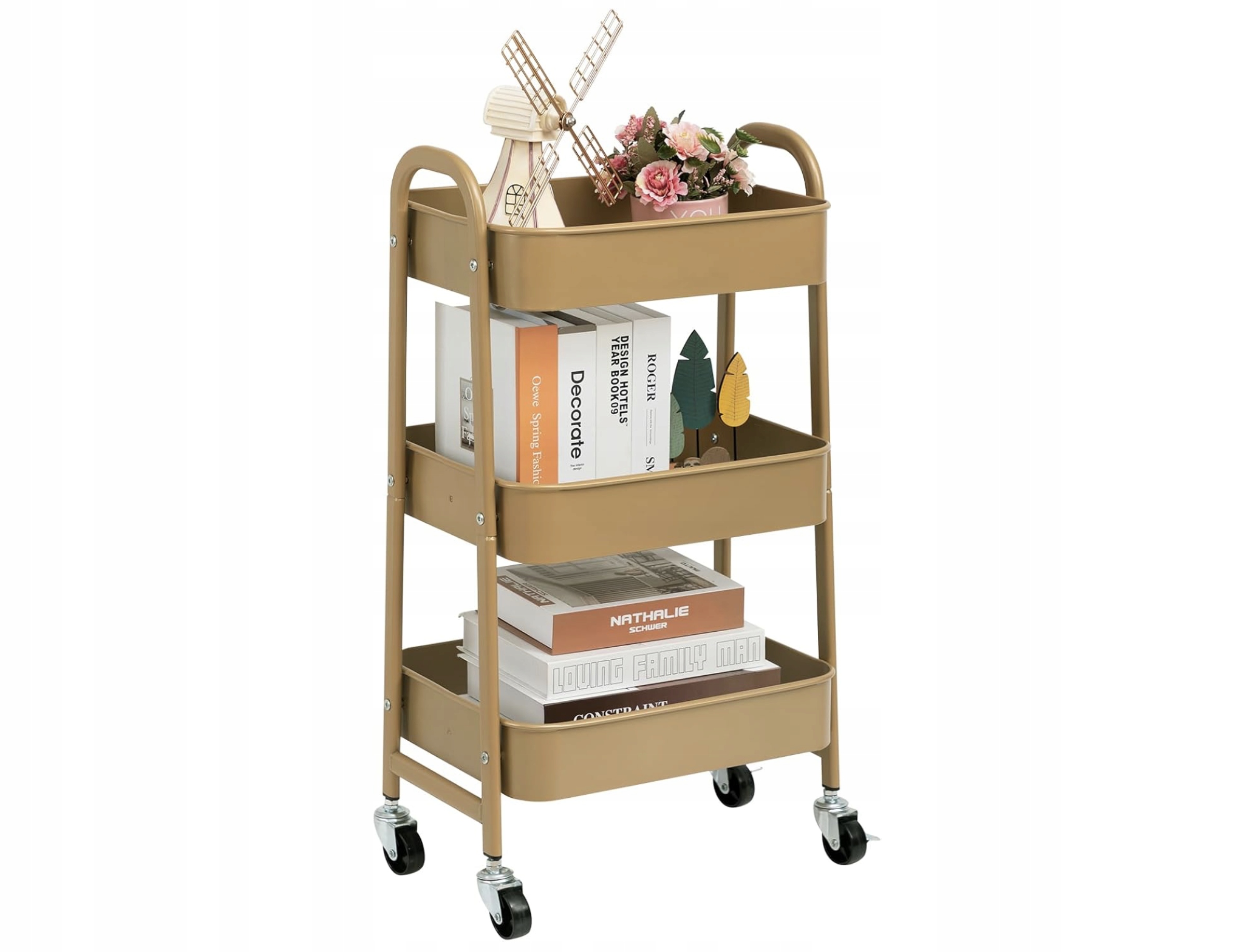 DOEWORKS 3-УРОВНЕВАЯ МЕТАЛЛИЧЕСКАЯ ТЕЛЕЖКА НА КОЛЕСАХ ЗОЛОТО 40×30×70