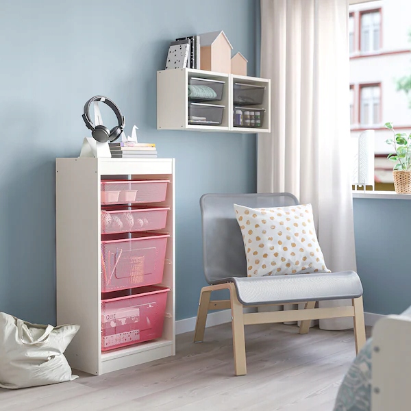 - Используя кадры и сетчатые контейнеры из серии Trofast, вы можете адаптировать решение для хранения, которое позаботится о больших и мелких предметах, даже в других частях дома.