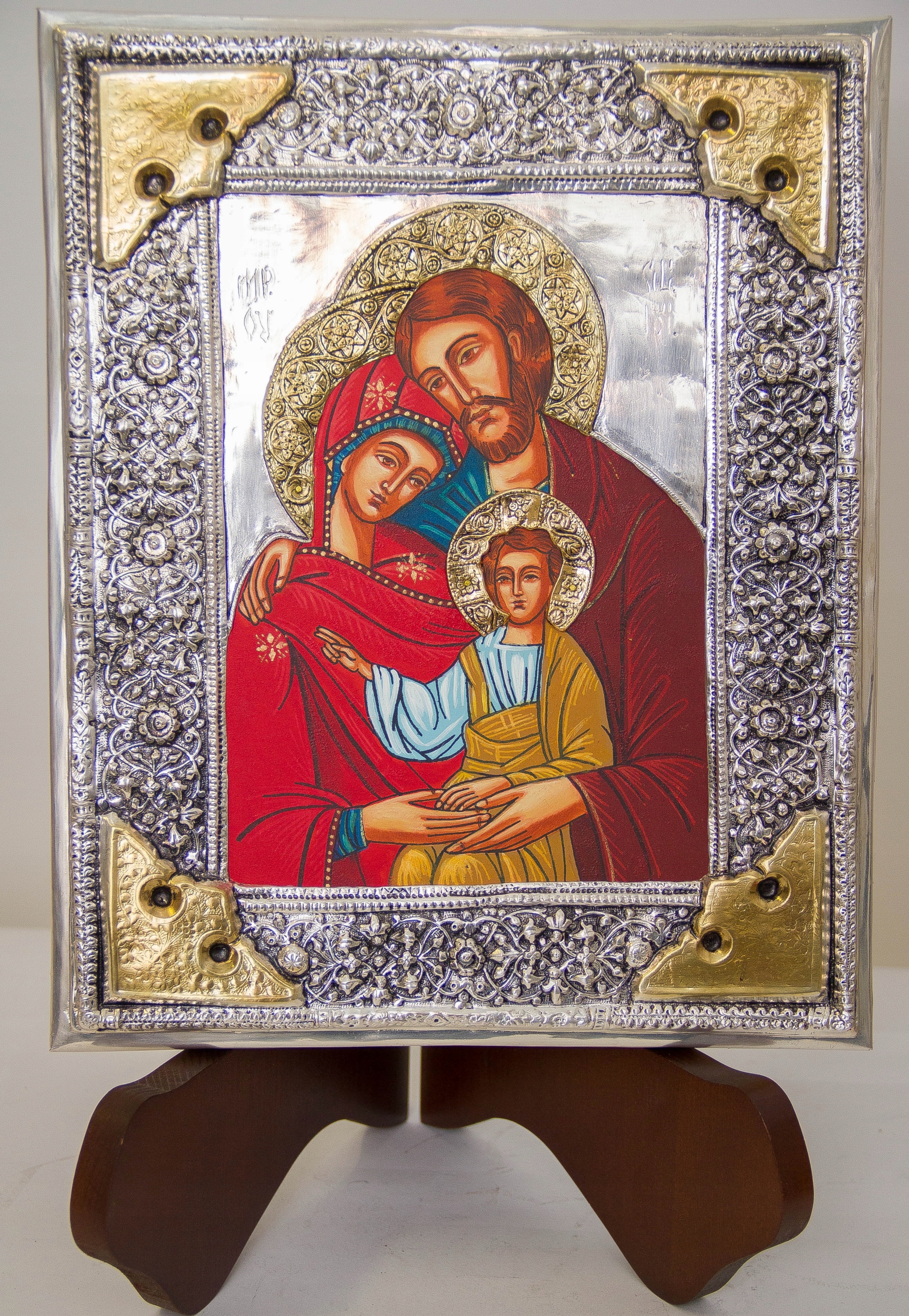 Серебро и позолота Икона Святого Семейства Назаретского, ручная роспись № 81П