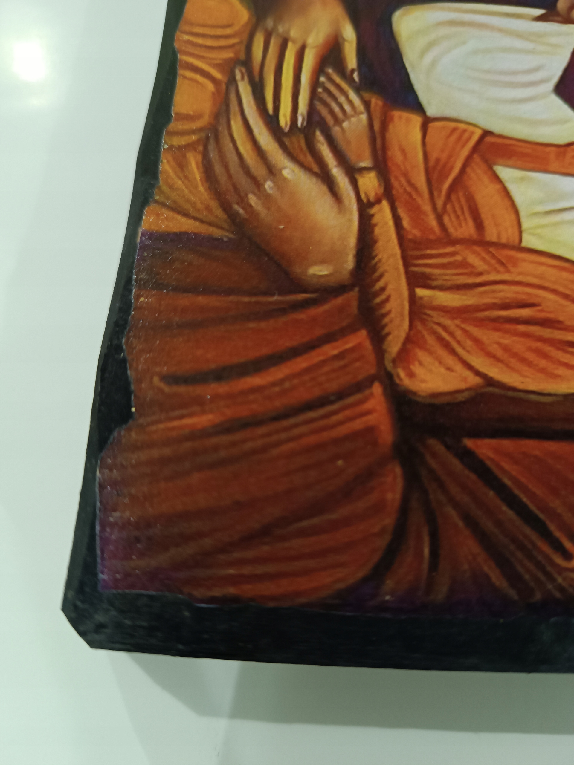 Боковые стороны иконы, нарисованные резцом, придают стиль и теплую форму.