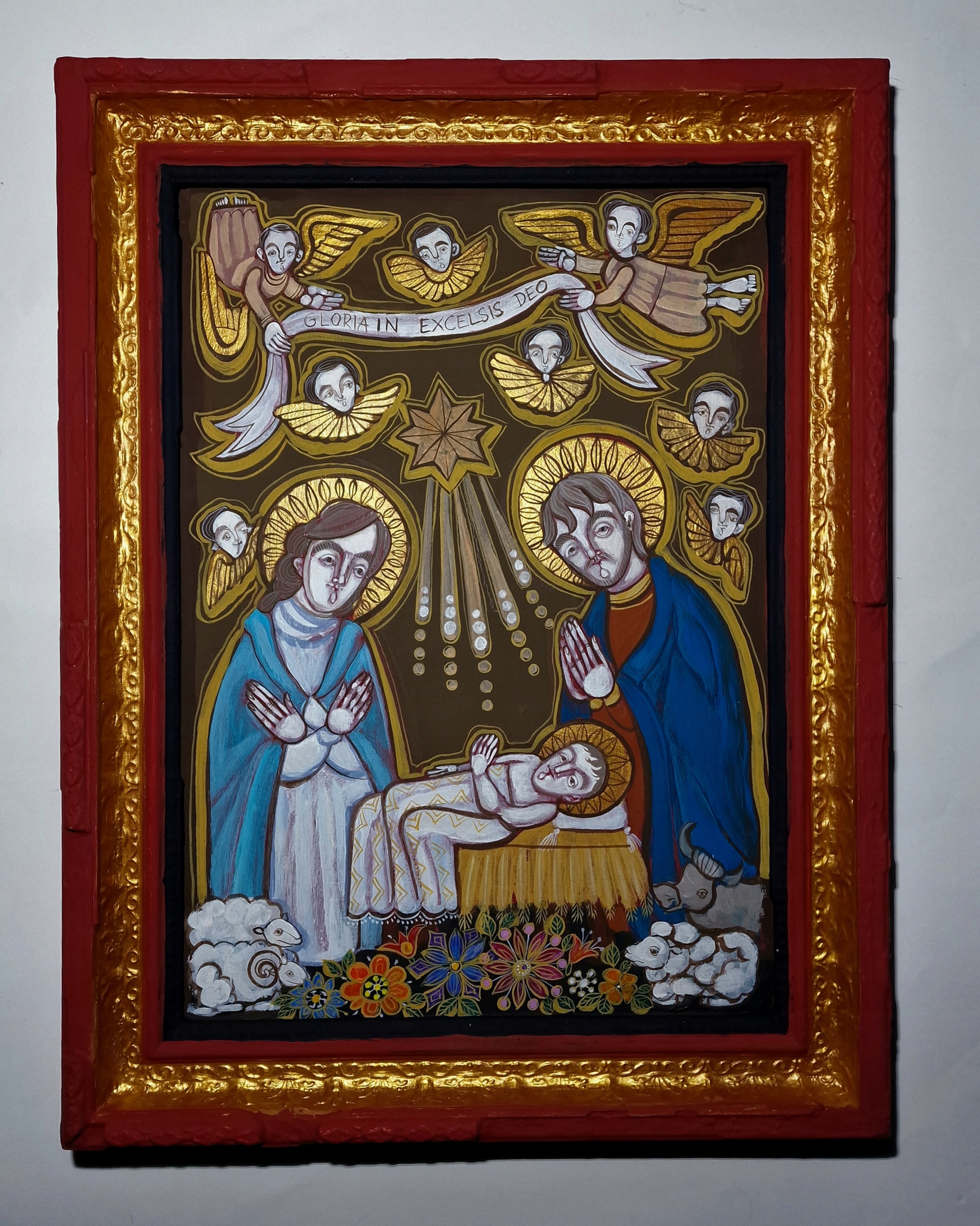 ІКОНА В НАРОДНОМУ СТИЛІ БОЗЕ НАРОДЖЕННЯ -КВІТНЕВА МОНІКА
