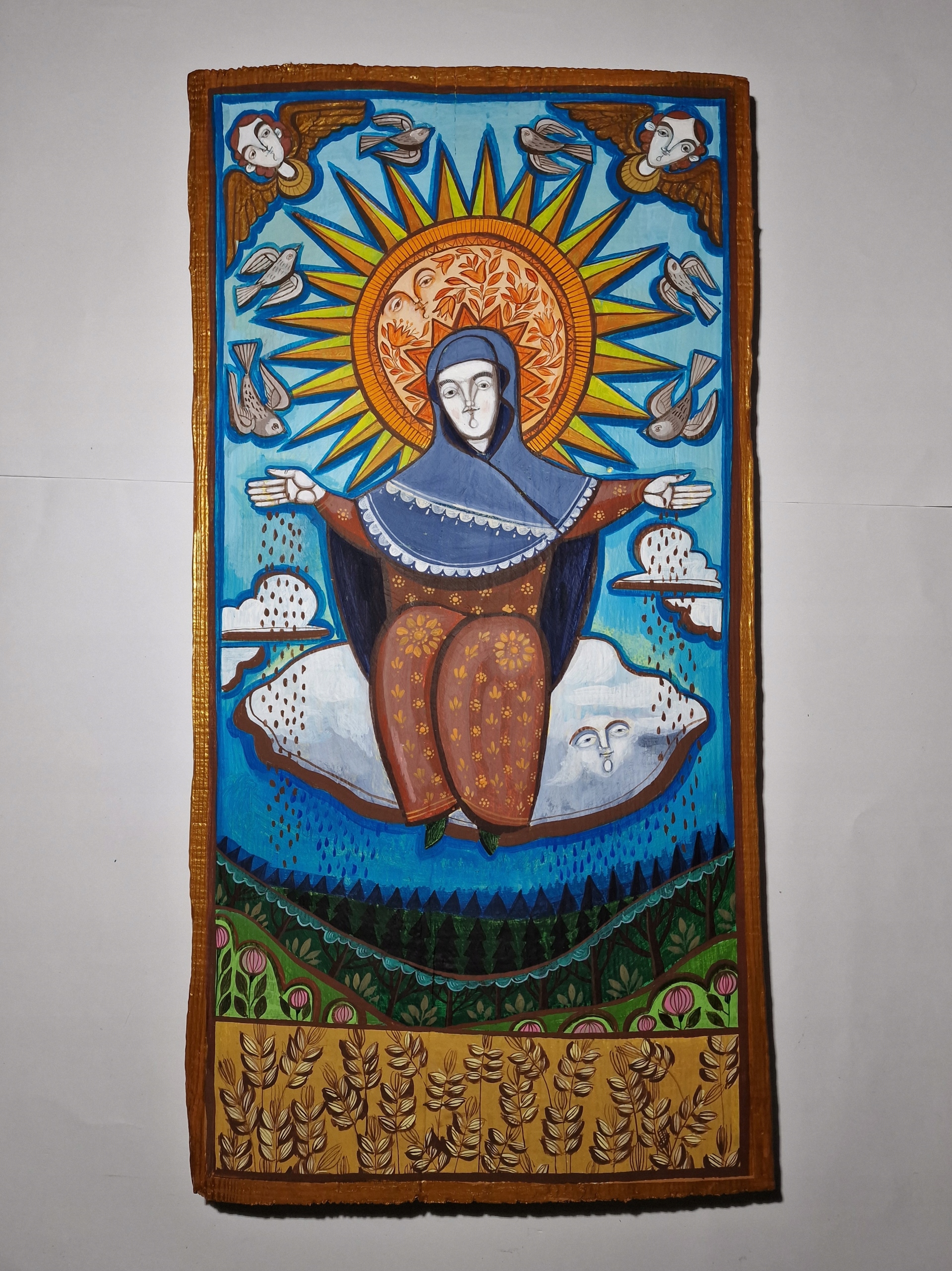 ІКОНА В НАРОДНОМУ СТИЛІ МАТИ БОЖЕСТВЕННА ПОСІВНА -МОНІКА КВІТНЕВА