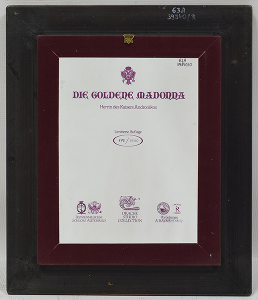 Красивая икона, написанная на фарфоре. На иконе изображена Золотая Мадонна.