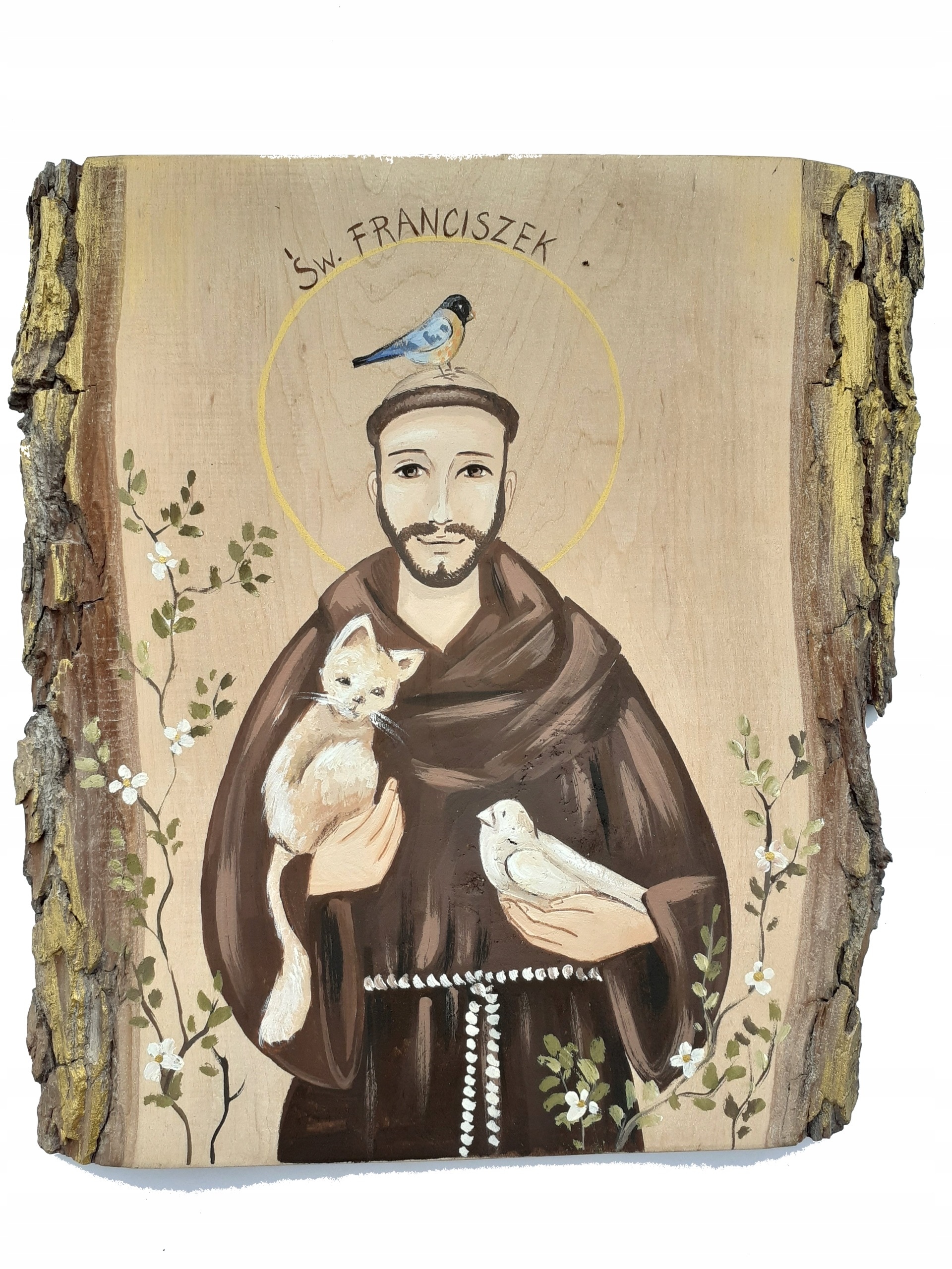 ІКОНОпис на масиві дерева з корою св. Кшиштоф ПОДАРУНОК