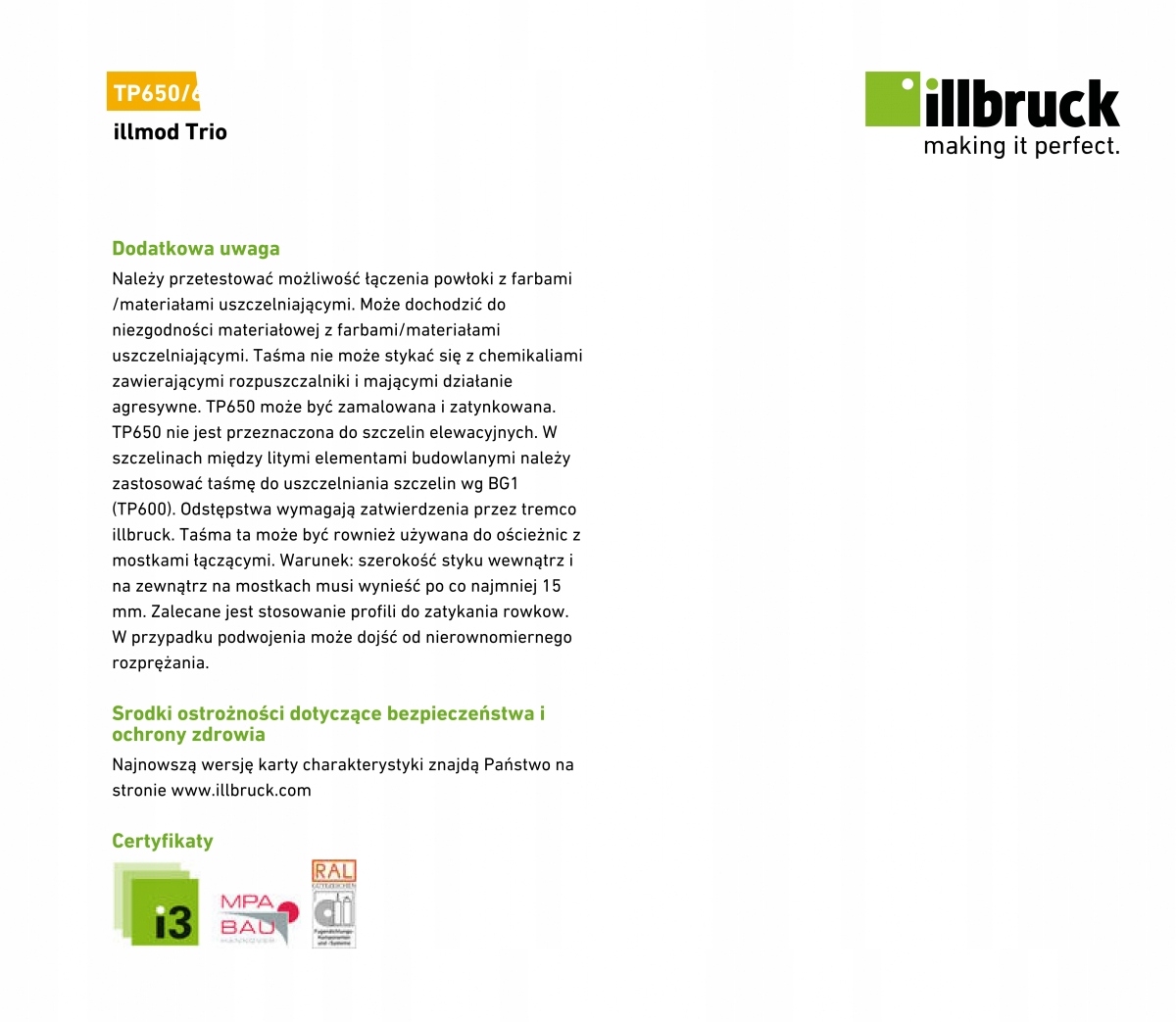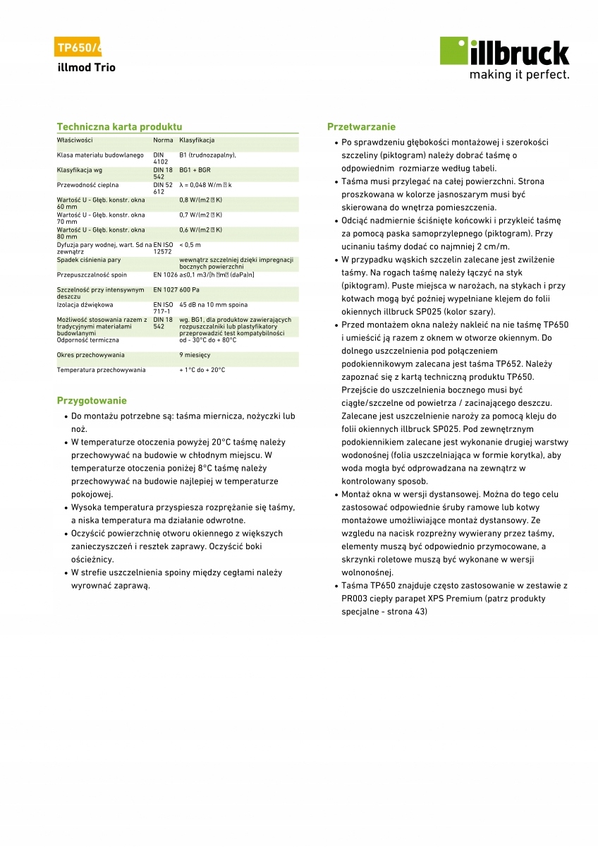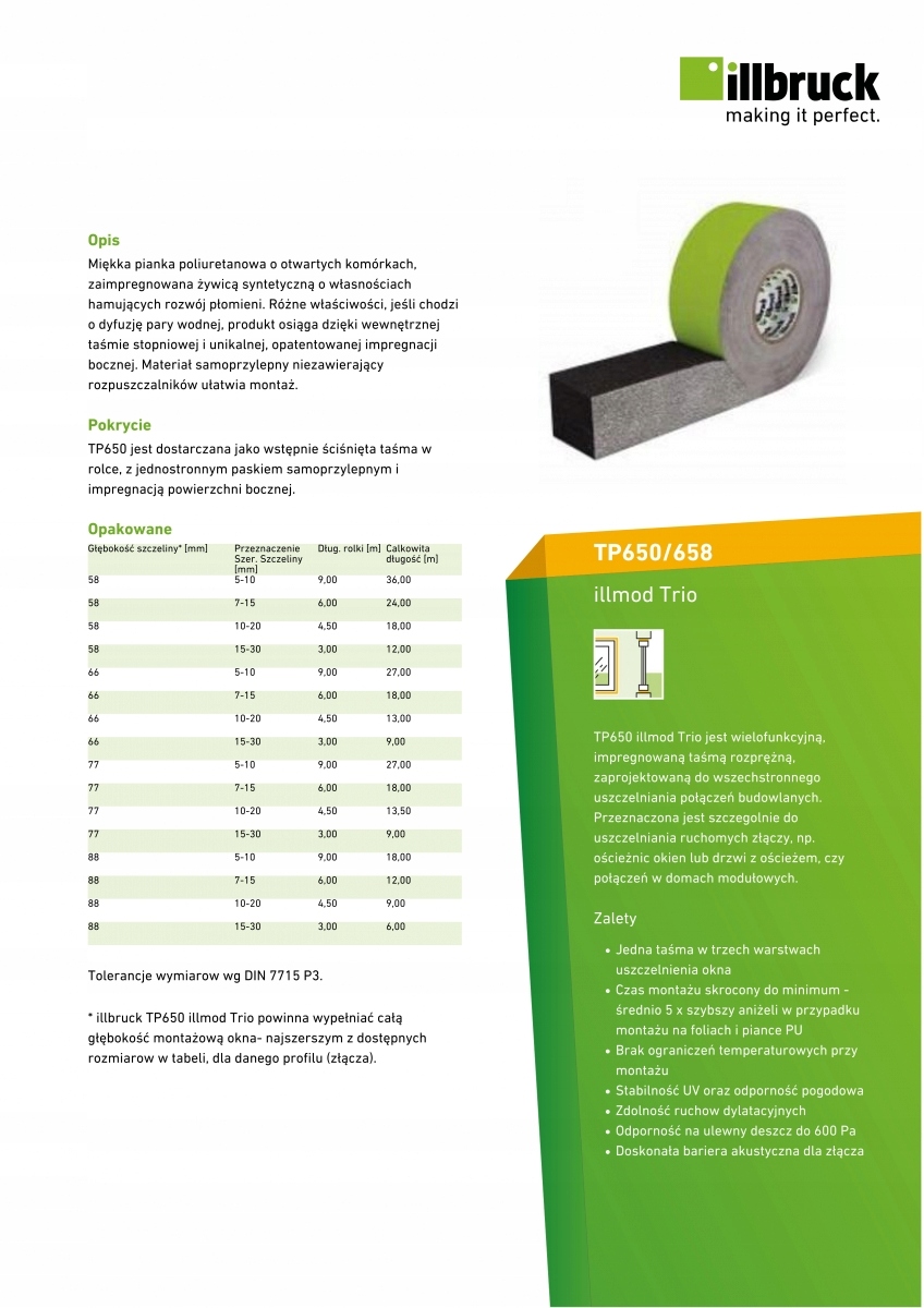 TP650 illmod Trio – многофункциональная расширяющаяся лента с пропиткой, предназначенная для комплексная герметизация строительных швов. Предназначен специально для герметизации подвижных швов, например