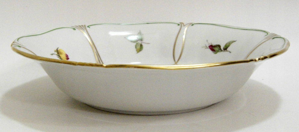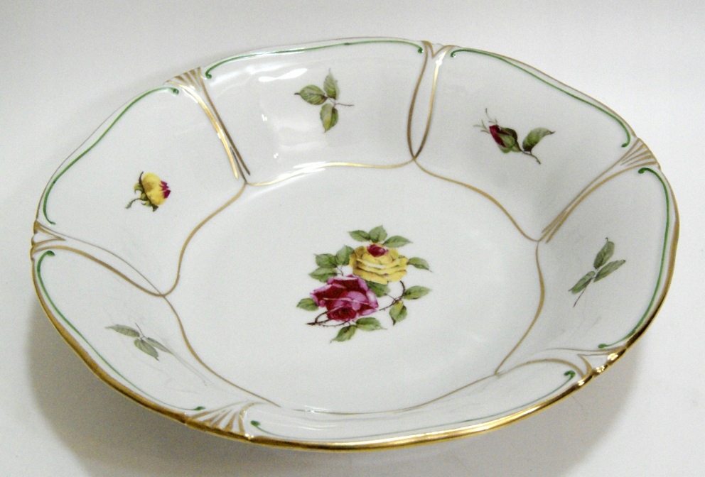 Предмет аукциона – старинная тарелка из белого фарфора, украшенная цветами, позолотой и рельефом.