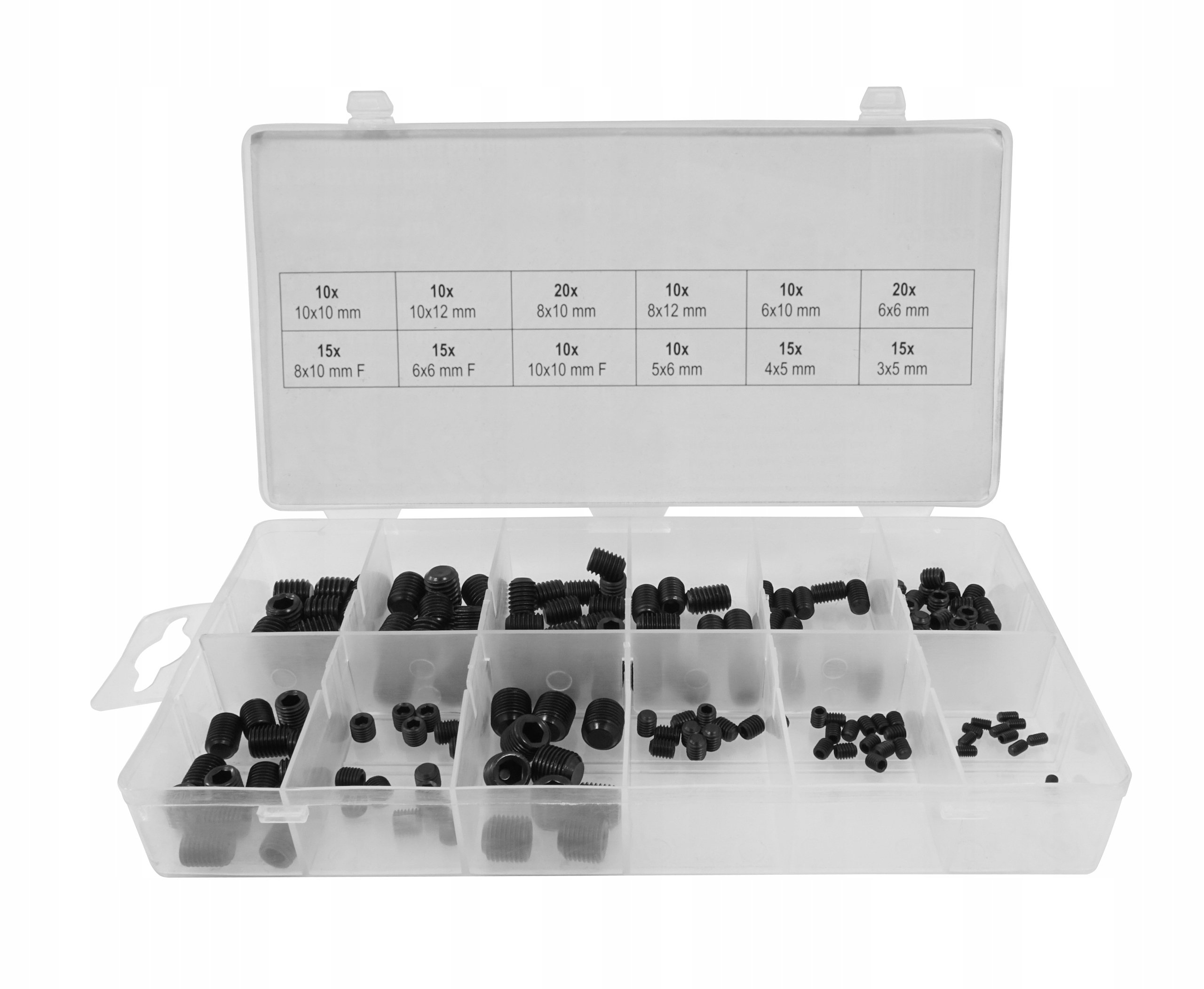 allen vints без головки 160 шт. Комплект включает размеры от 3х5 мм до 10x12 мм. Целое помещено в удобную упаковку «сортировщика».