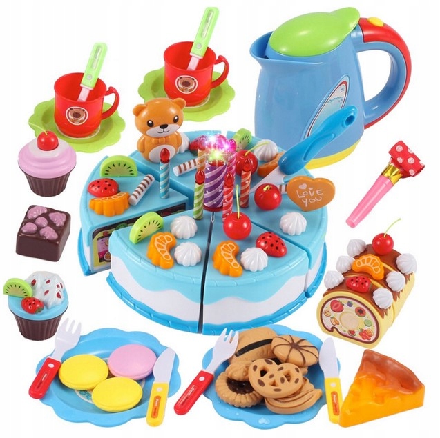 Красивый, красочный праздничный торт со свечами и надписью. Торт состоит из 6 частей, соединенных застежкой-липучкой. Ребенок может смело разрезать торт пластиковым ножом. Ребенок может украсить торт по своей задумке. Торт имеет небольшие отверстия для украшения.