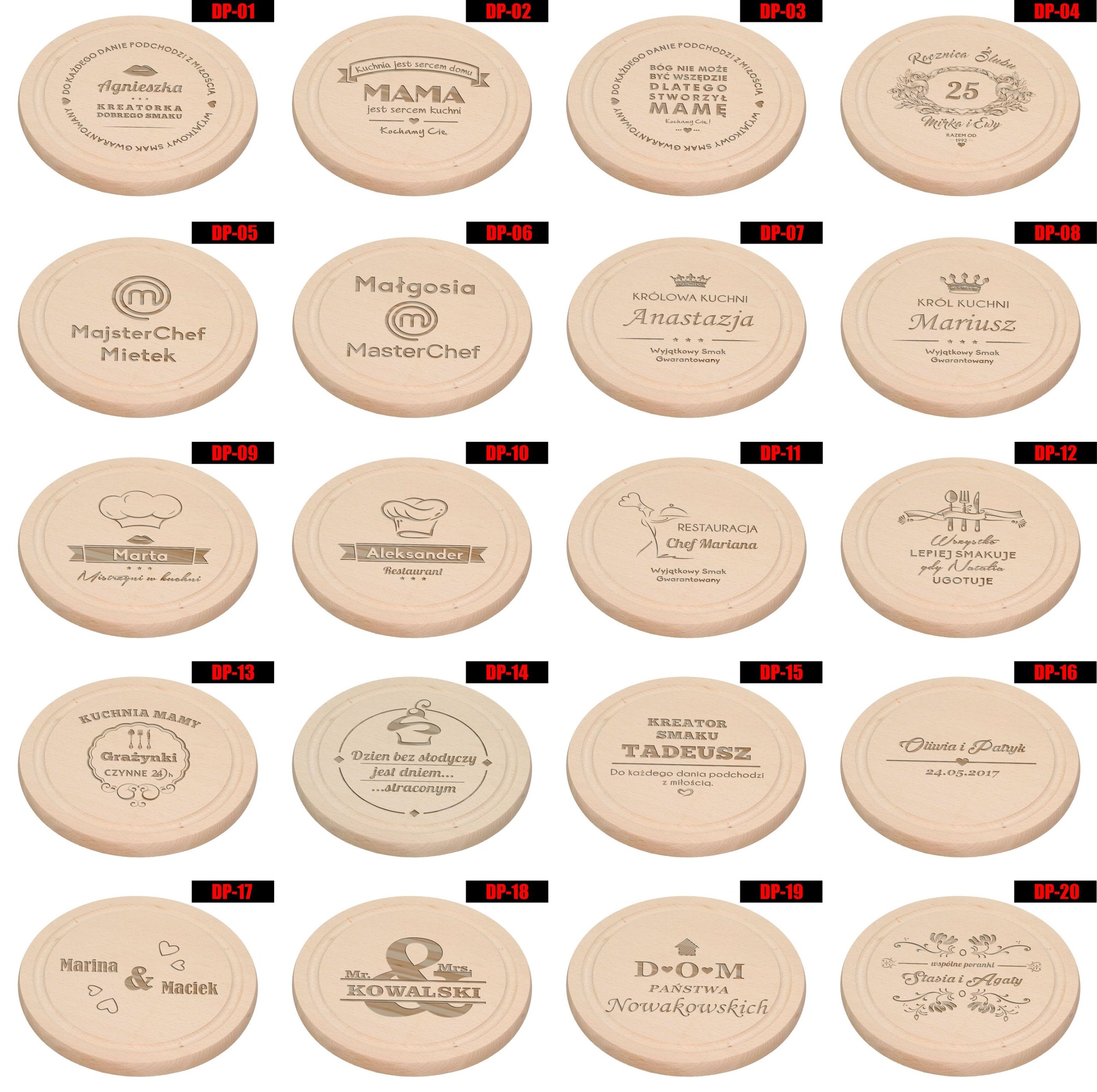 DP-03, МАМА, я люблю тебя, Ханя или например DP-04, 30 лет, Марти и Артура, вместе с 1988 года или например DP-06 Ягода или например DP-33 , Бася Файна Бабечкаили например DP-34 Мама Зузя