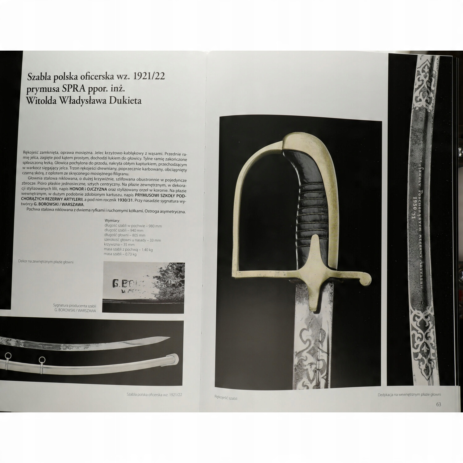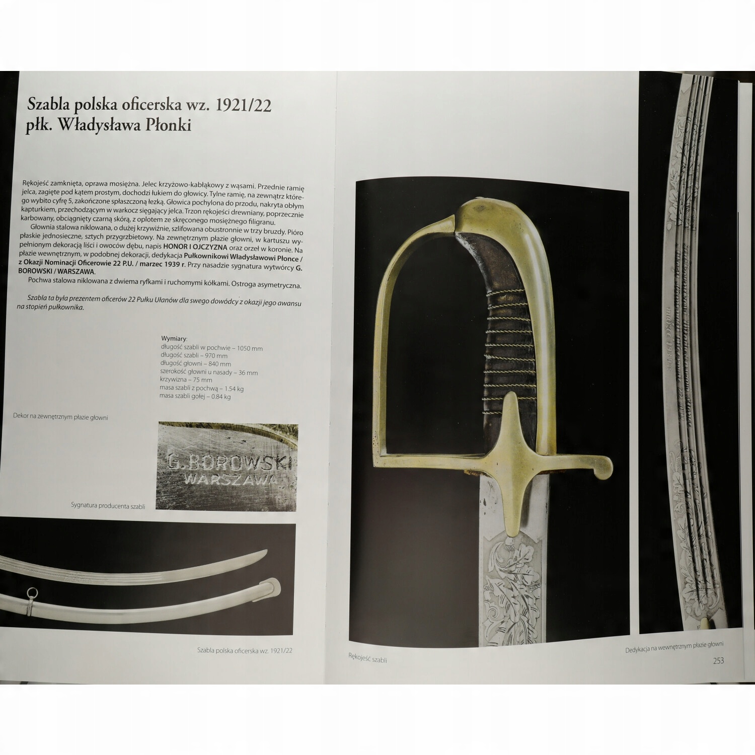 Представленный альбом, представляющий собой великолепный каталог уникальных сабель из частной коллекции, также является исторической книгой, имеющей важное дидактическое и историческое значение. Составить столь богатый и обширный фактический материал о такой большой группе польских офицеров вместе с «литературой», расположенной на сабельных клинках конкретной коллекции, невозможно ни при каком другом подходе и композиции. Следовательно, Павел Коморовский заслуживает особого признания, поскольку именно благодаря его многолетнему увлечению и постоянно углубляемым знаниям, в том числе посредством архивных исследований, мы имеем доступ к биографиям многих польских офицеров, чьи военные действия имели столь важное значение для нашей борьбы за независимость. во время двух мировых войн.