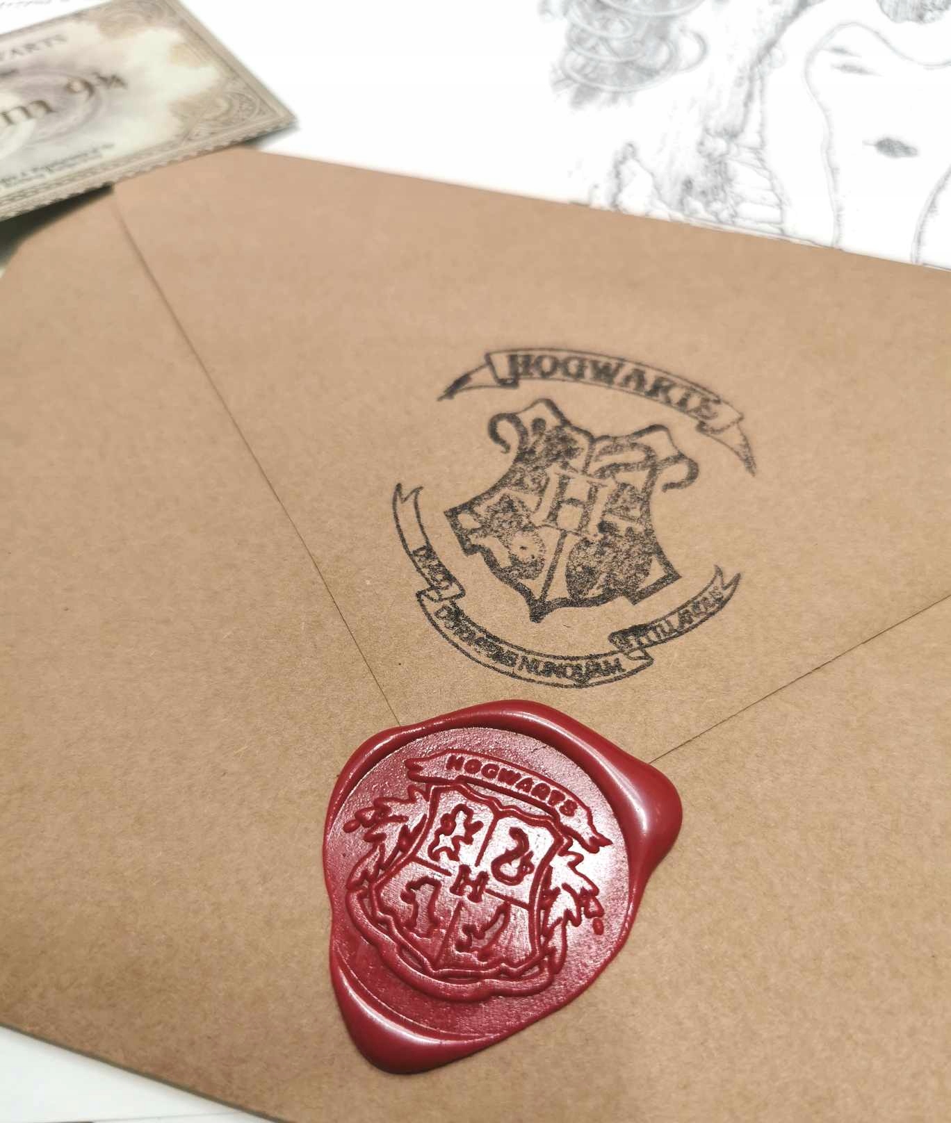 Письмо на конверте также имеет настоящую сургучную печать с гербом. Настоящая печать должна сломаться при открытии или оторваться совсем, если ее поддеть - тогда она у вас на память :)