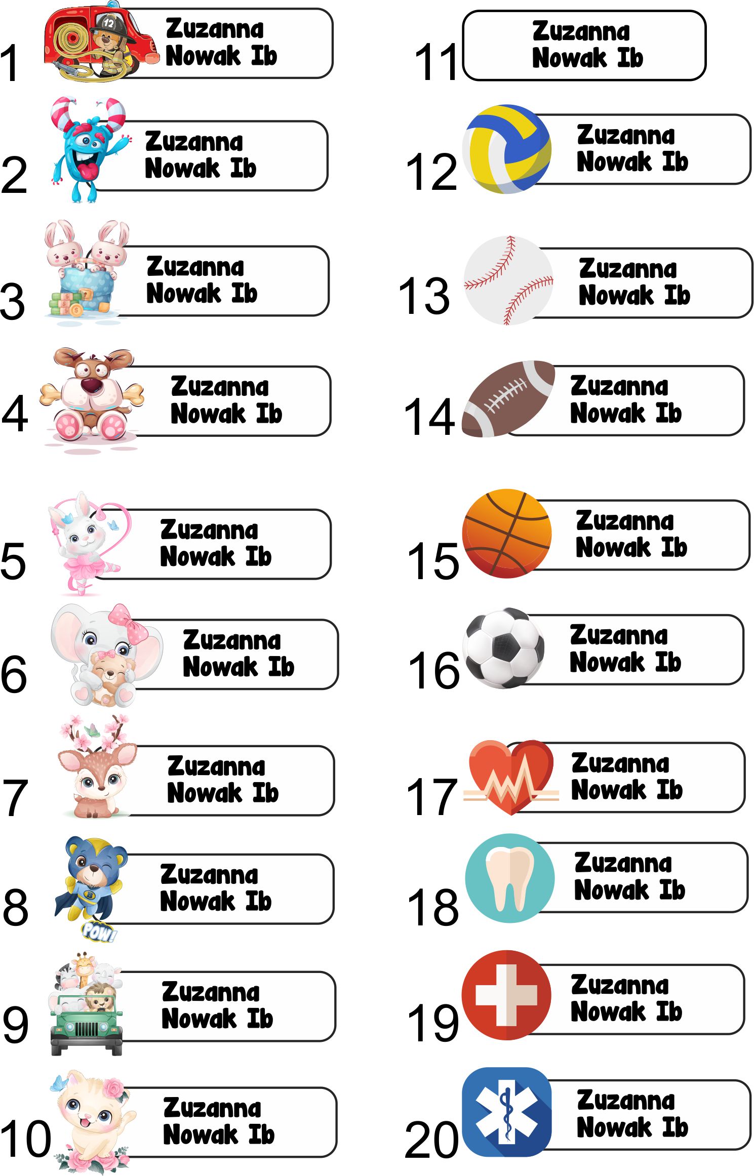 IMENNIKI NAPRASOWANKI METKI IMIENNE IMIENNIKI 56 sztuk