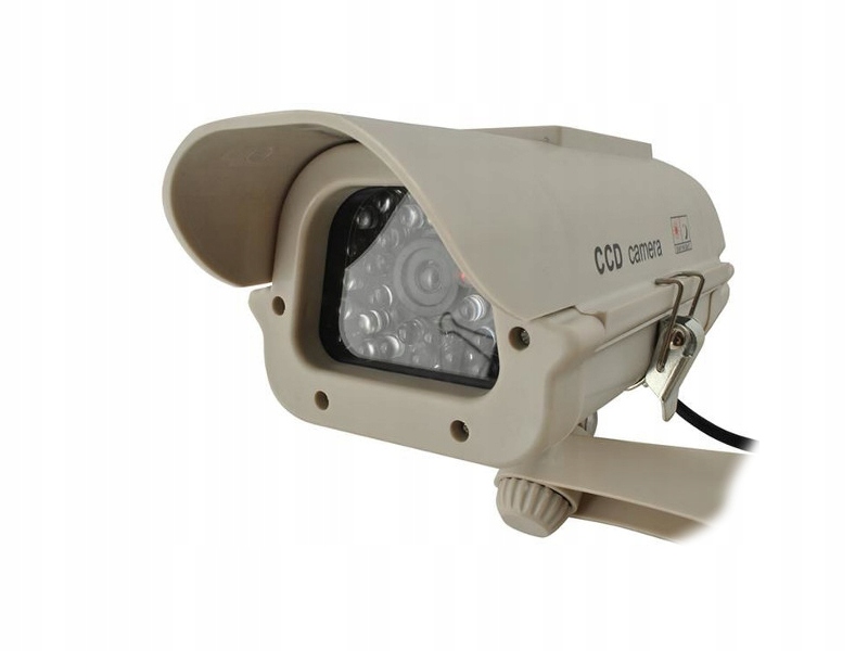 Устройство оснащено красным мигающим светодиодом, питаемым от солнечной панели, и имитацией ИК-диодов (инфракрасных диодов), что позволяет предположить, что мониторинг работает и в темнота. Это создает впечатление, что на территории имеется система наблюдения и отпугивает потенциальных злоумышленников. Устройство имеет встроенную солнечную панель, которая питает пульсирующий светодиод. Под крышкой устройства также есть место для двух батареек типа АА (продаются отдельно), которые будут заряжаться в солнечную погоду (при освещенности до 2000-2500люкс). Благодаря этому манекен будет работать и в темное время суток! Вместо аккумуляторов также можно использовать обычные батарейки, но это не рекомендуется.