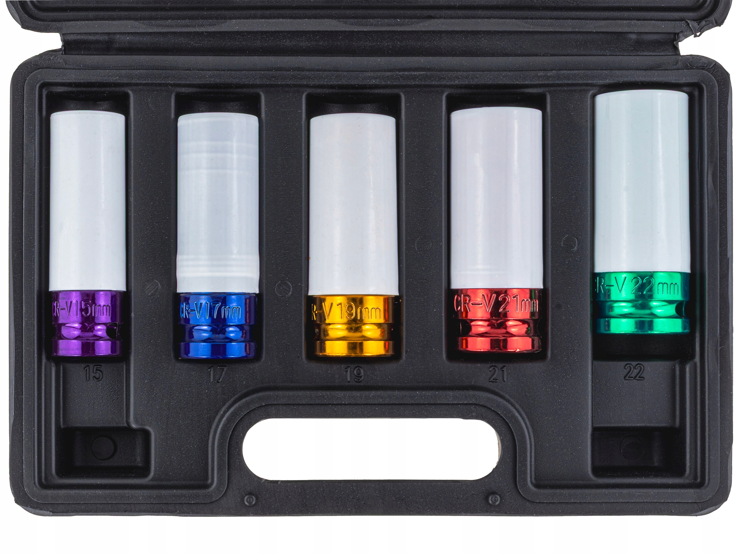 НАБОР УДАРНЫХ ГОЛОВОК ДЛЯ ЛЕГКОСПЛАВНЫХ ДИСКОВ 1/2" – 15, 17, 19, 21, 22 мм