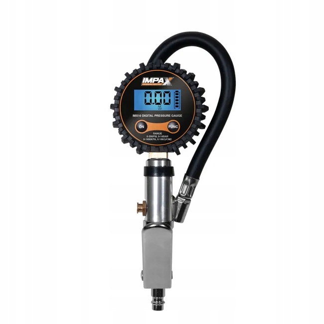 Impax Model Imx10 Пневматический пистолет - это точный насосной инструмент, оснащенный цифровым дисплеем, который позволяет легко читать давление. Пистолет имеет максимальное рабочее давление в 14 баров, а длина шланга составляет 33 см, что обеспечивает удобство использования. Продукт изготовлен из высококачественной стали, которая гарантирует долговечность и надежность. Благодаря универсальному соединению 1/4 "совместимо со многими пневматическими устройствами.