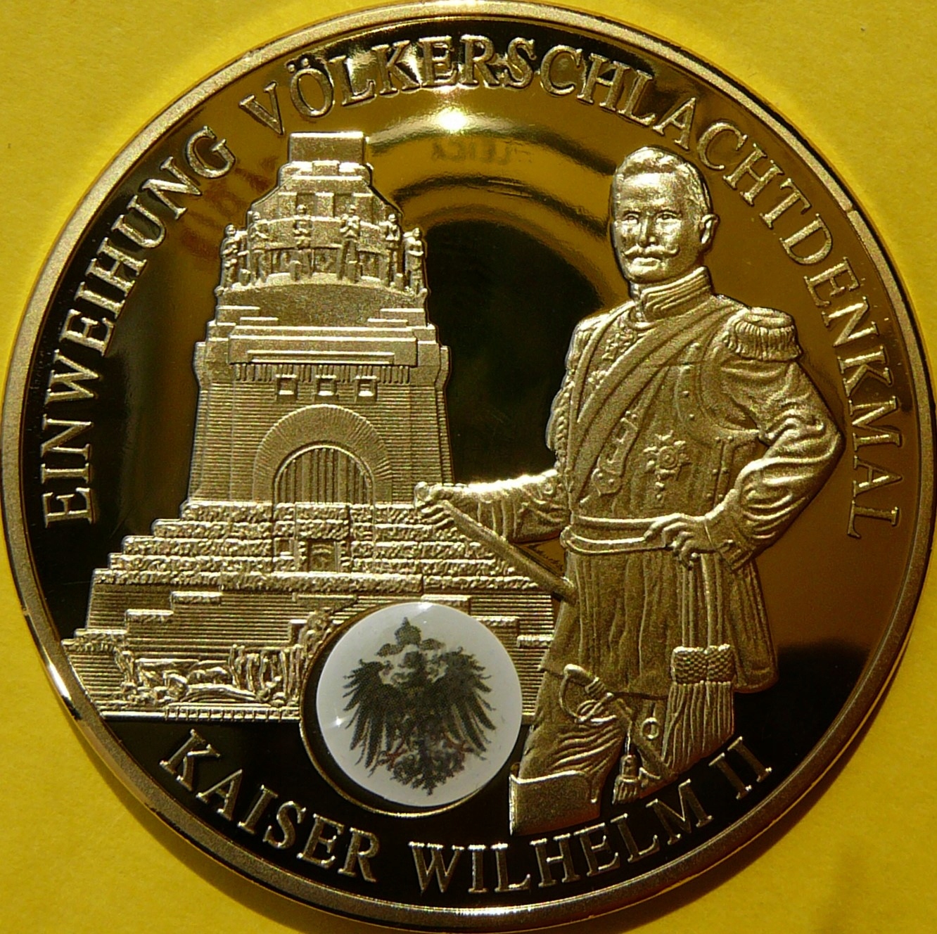 НА АУКЦИОНЕ ПРЕДСТАВЛЯЕТСЯ КРАСИВАЯ, ОГРОМНАЯ КОЛЛЕКЦИОННАЯ НУМИЗМА, ПОКРЫТАЯ ЧИСТЫМ ЗОЛОТОМ - ИМПЕРАТОР ВИЛЬГЕЛЬМ II / ПАМЯТНИК БИТВЫ НАЦИЙ ЛЕЙПЦИГ 1813 Г. - ГИГАНТ - ЗЕРКАЛЬНАЯ МАРКА - МОНЕТНЫЙ - НА ДРУГИХ АУКЦИОНАХ ГИГАНТЫ ИЗ ЭТОЙ СЕРИИ - НАЖМИТЕ ЗДЕСЬ, ДОСТУПНО ДЛЯ ПРОСМОТРА