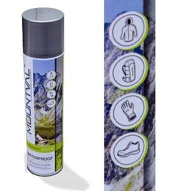 WATERPROOF MOUNTVAL — бесцветный спрей, защищающий обувь и одежду от влаги и пятен. Подходит для: