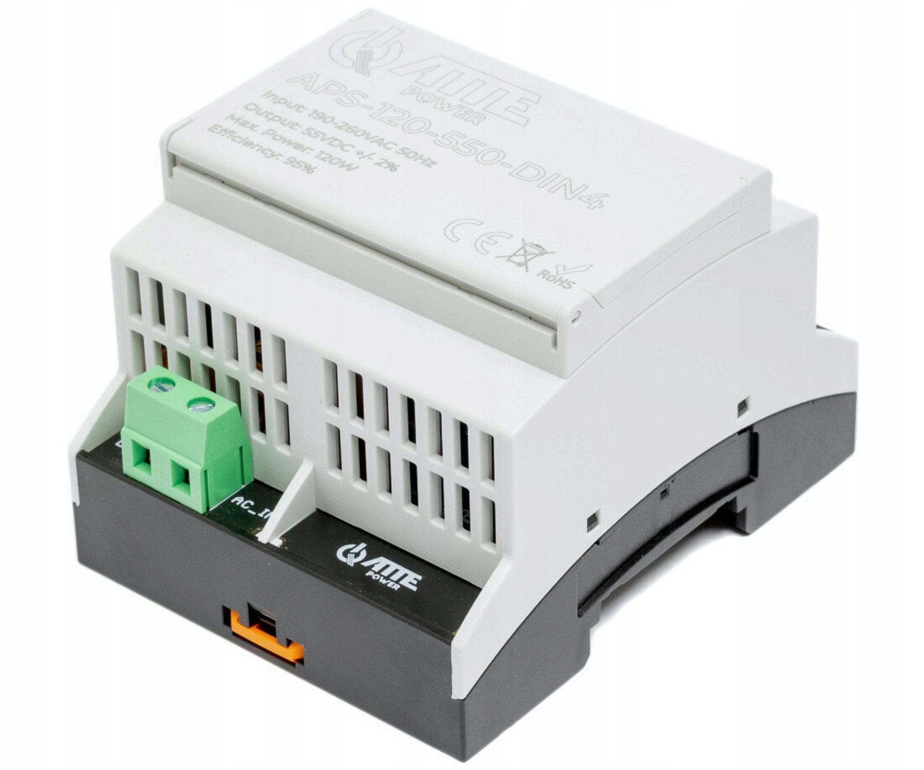 APS-120-550-DIN4 — импульсный источник питания в корпусе DIN4, допускающий установку на рейку TH35.