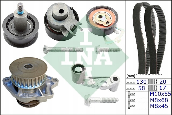 ГРМ С ВОДЯНЫМ НАСОСОМ ОТ ИЗВЕСТНОЙ КОМПАНИИ INA, ПРЕДНАЗНАЧЕН ДЛЯ АВТОМОБИЛЕЙ VW AUDI SKODA SEAT GROUP