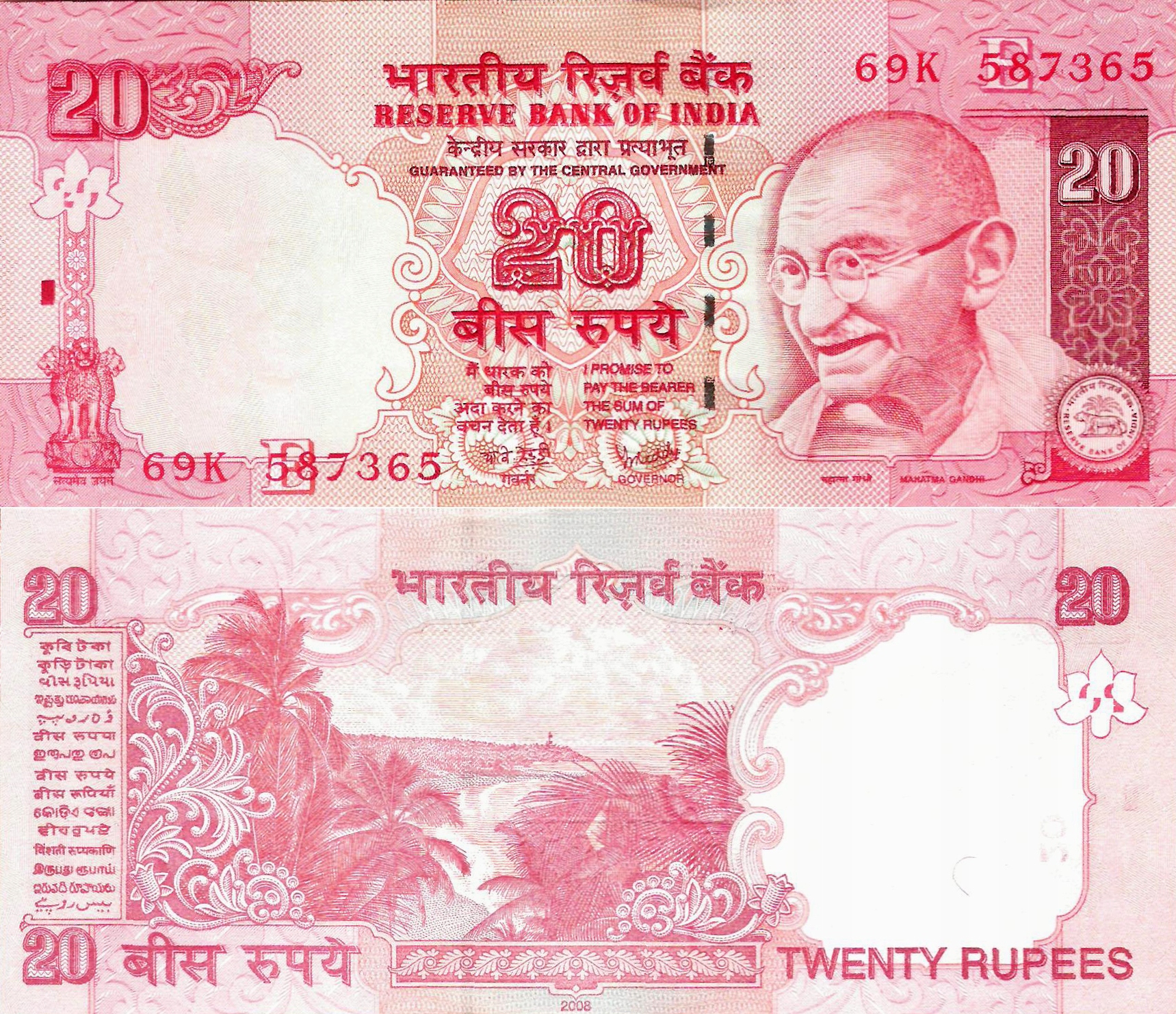 India 2008 - 20 Rupees - Pick 96 UNC