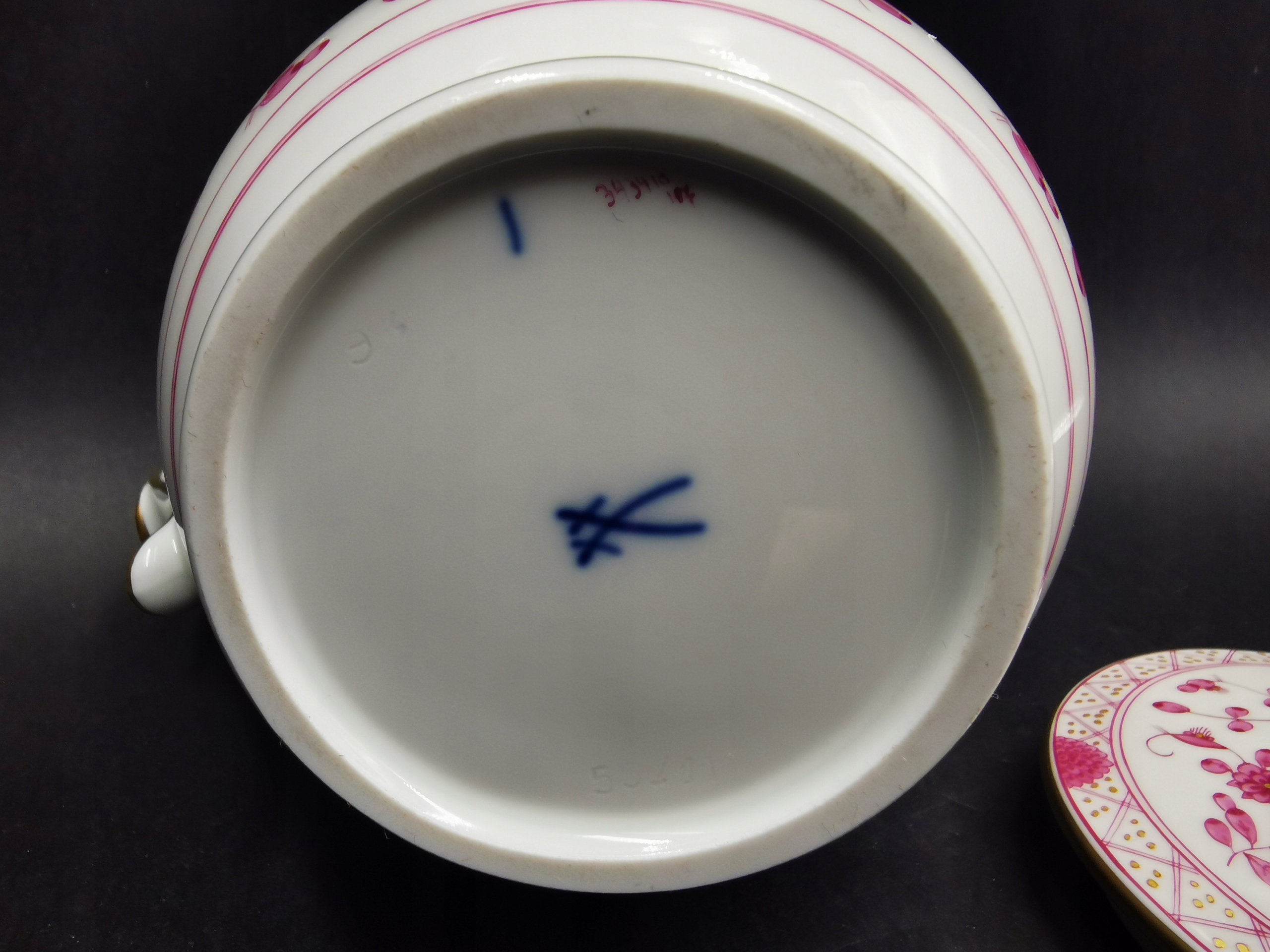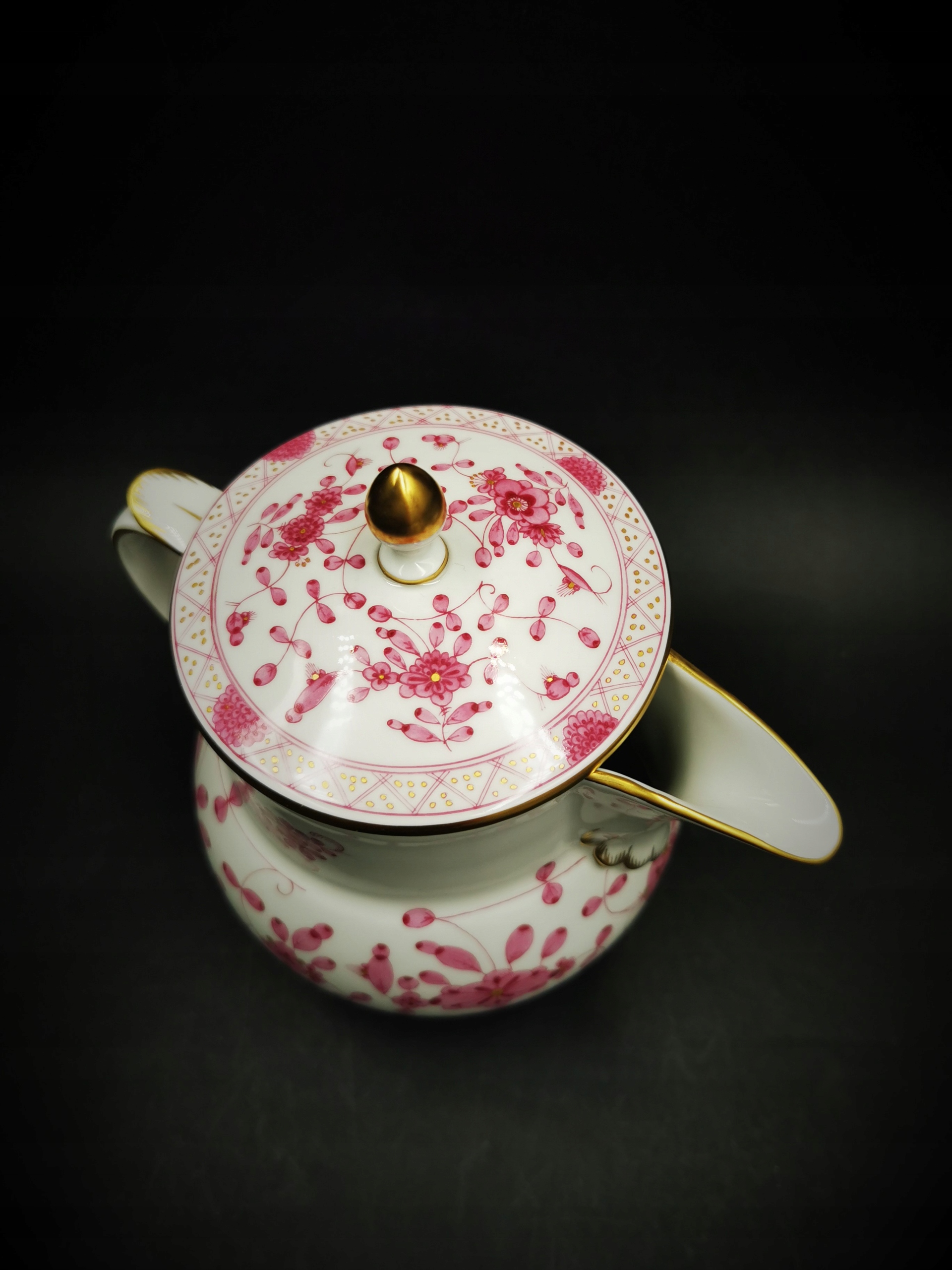 Представляем очаровательный чайник от превосходной фабрики в Мейсене.Этот красивый сосуд принадлежит к коллекции Indian Flower и имеет оригинальную подпись в виде двух скрещенных кобальтовых сабель, указывающую на его происхождение 20 века.Несомненное преимущество, помимо изящный цветочный декор фиолетового цвета, края сосуда, ручка крышки и кувшина тронуты золотом. Состояние изделия оценивается как очень хорошее, и его стоит рекомендовать каждому коллекционеру белого золота.