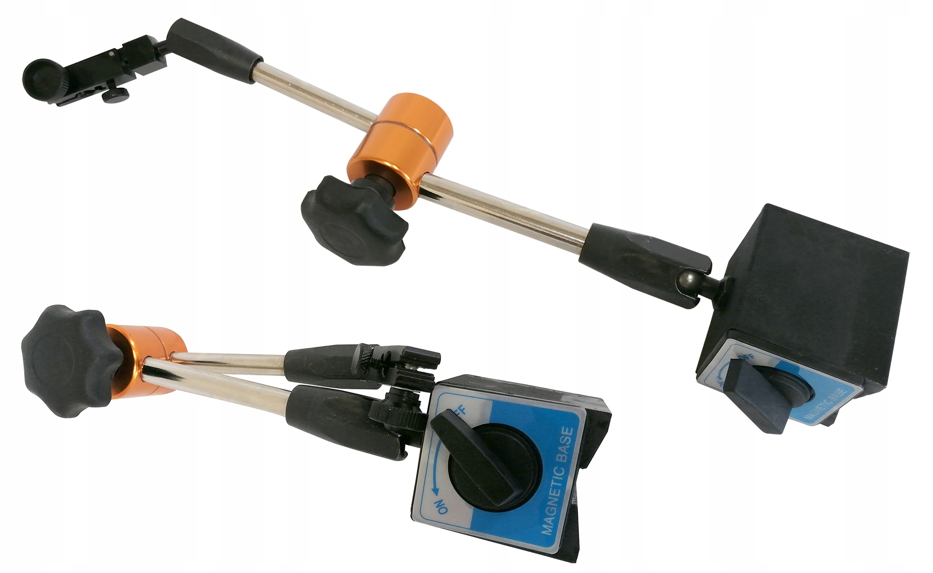 Штатив имеет фиксатор, одна ручка поворачивает все кронштейны штатива, а крепление штатива магнитное с усилием 588 Н – 60 кг.