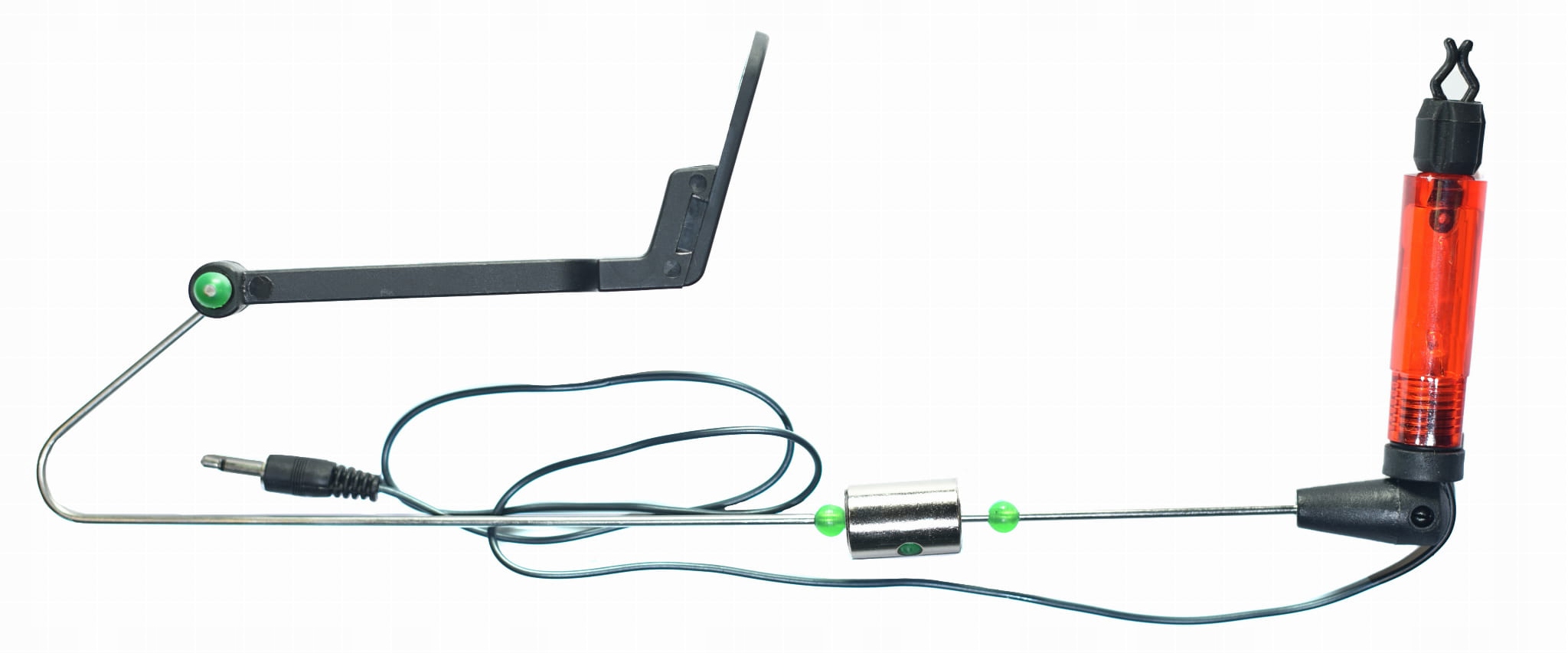 Свингер очень полезен во время ловли карпа. Работает с электронными индикаторами поклевки (с выходом 2,5 мм – стандарт). После подключения к сирене он загорается синхронно с диодом сирены во время питания. Свингер крепится к опоре под индикатор поклевки или вилке.