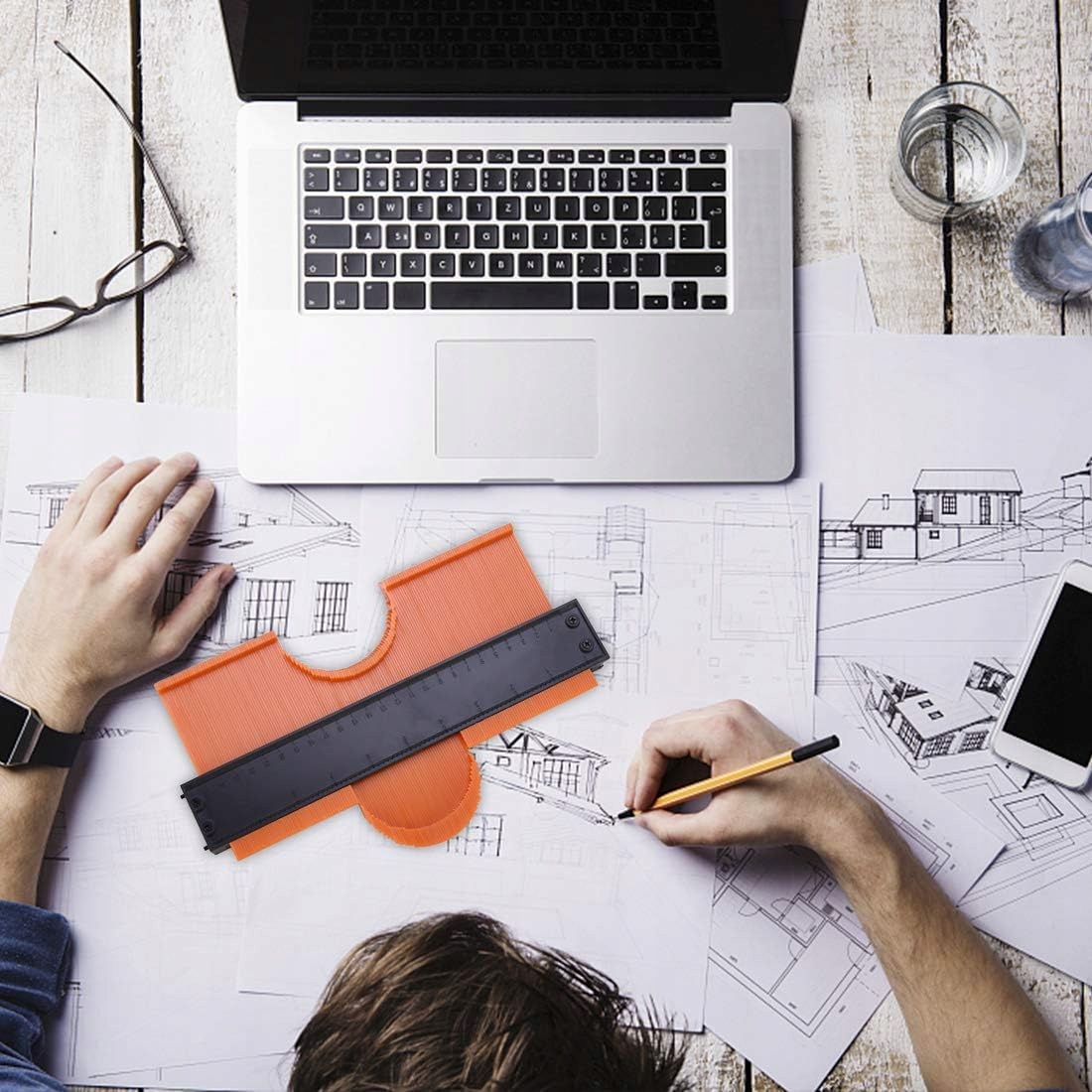 - Просто прижмите измерительные зубцы к объекту, чтобы он соответствовал контуру, зафиксируйте контурные зубцы на месте, затем обведите нужную форму и точно перенесите на материал для резки.