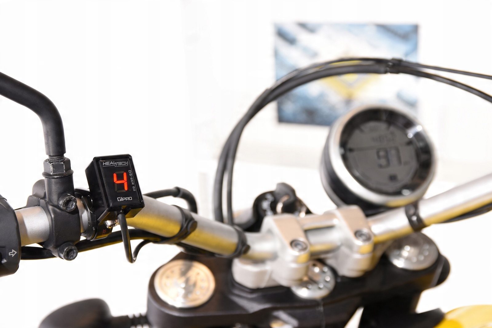 Установка по принципу Plug-n-Go, путем подключения к оригинальному разъему датчика скорости мотоцикла (переключатель положения коробки передач). ) , простое крепление дисплея с помощью двустороннего скотча.