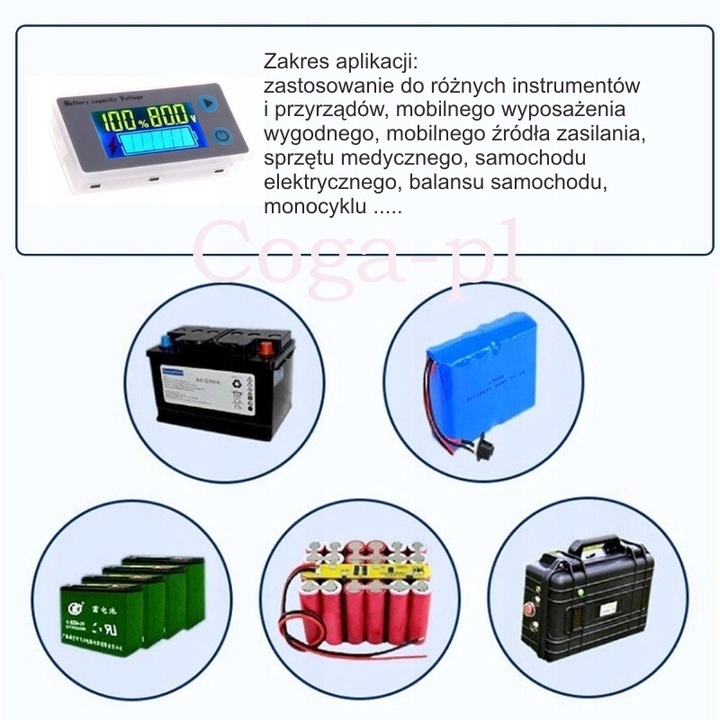 Применение - гелевые аккумуляторы, свинцово-кислотные аккумуляторы, литиевые аккумуляторы, никель-металлогидридные аккумуляторы, все аккумуляторы, содержащие литий-фосфат.