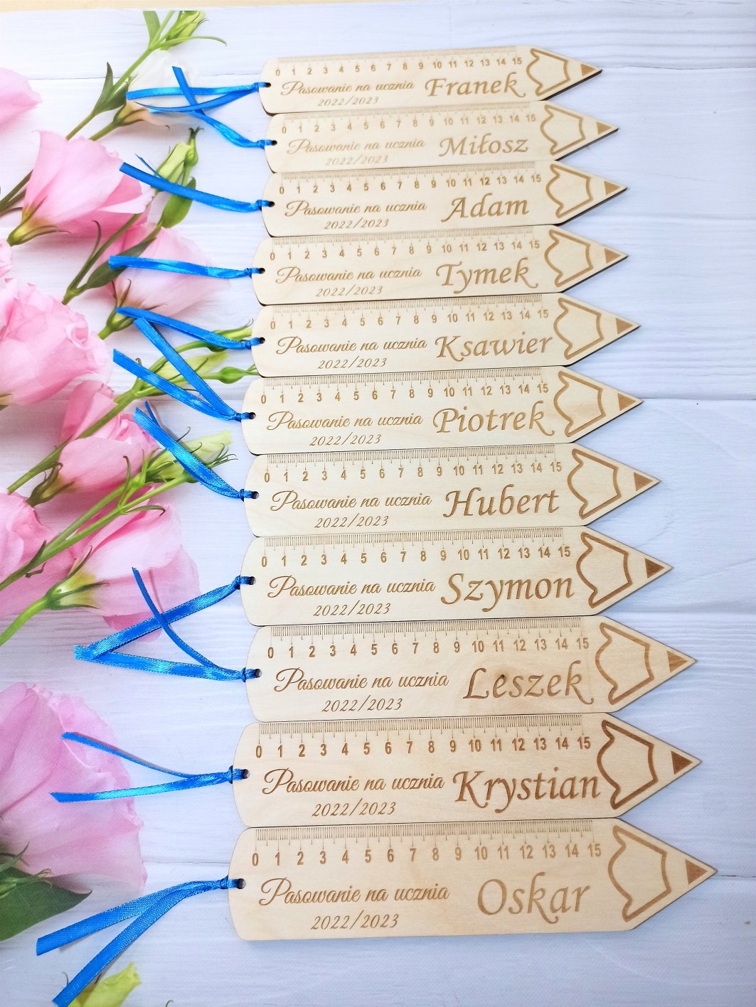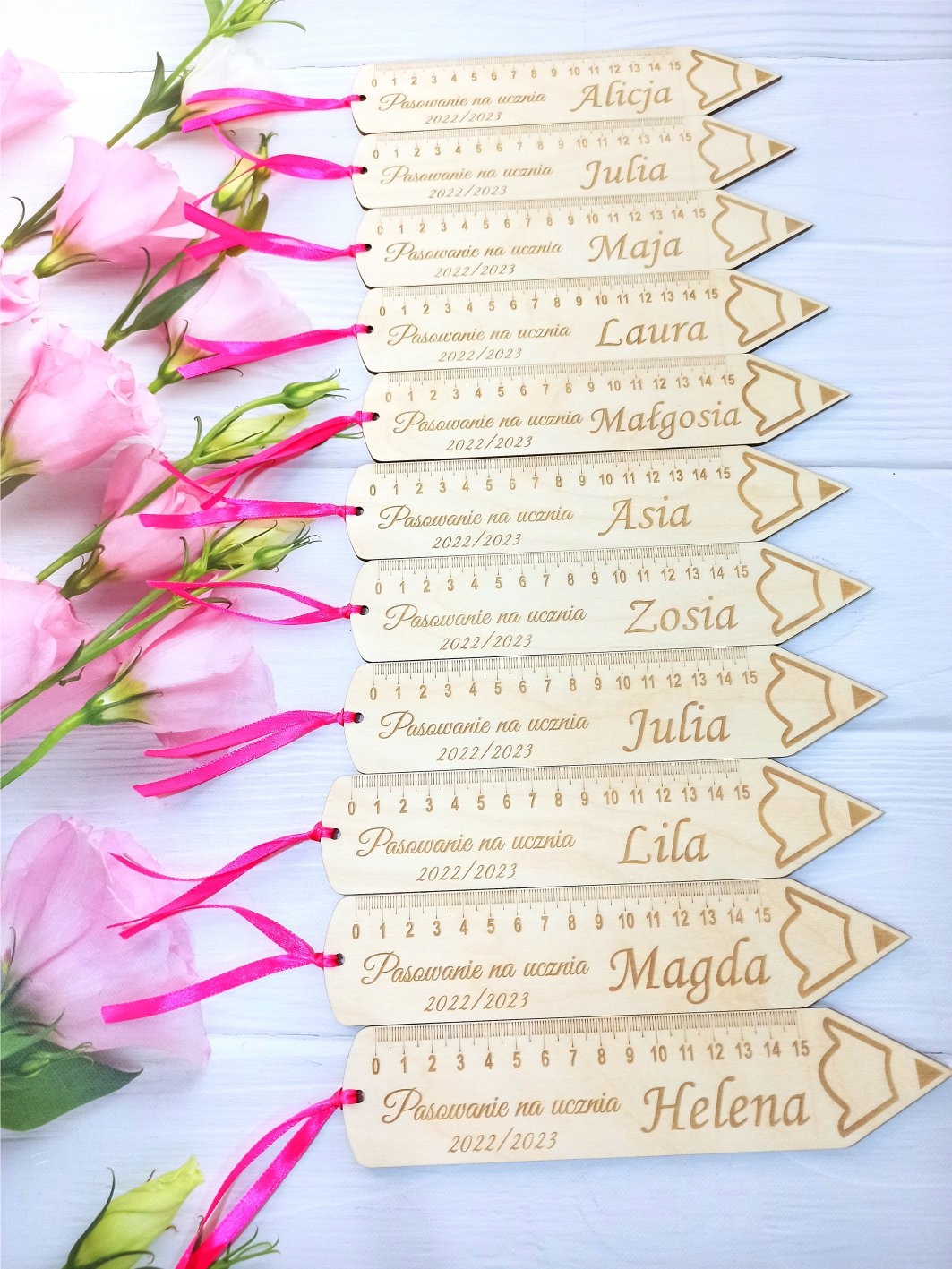 Полностью персонализированная линейка с названием и названием школы или детского сада, изготовленная из фанеры, с гравировкой и лазерной резкой.