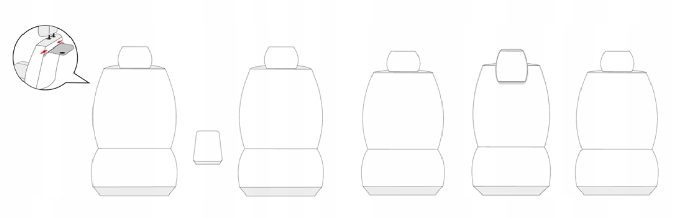 В зависимости от модели автомобиля в комплект входят чехлы на такие элементы, как передний или задний подлокотник, молнии, позволяющие использовать столики, и карманы в спинках передних сидений, чехлы на складные подголовники, боковые чехлы на колесные арки ( столбцы).