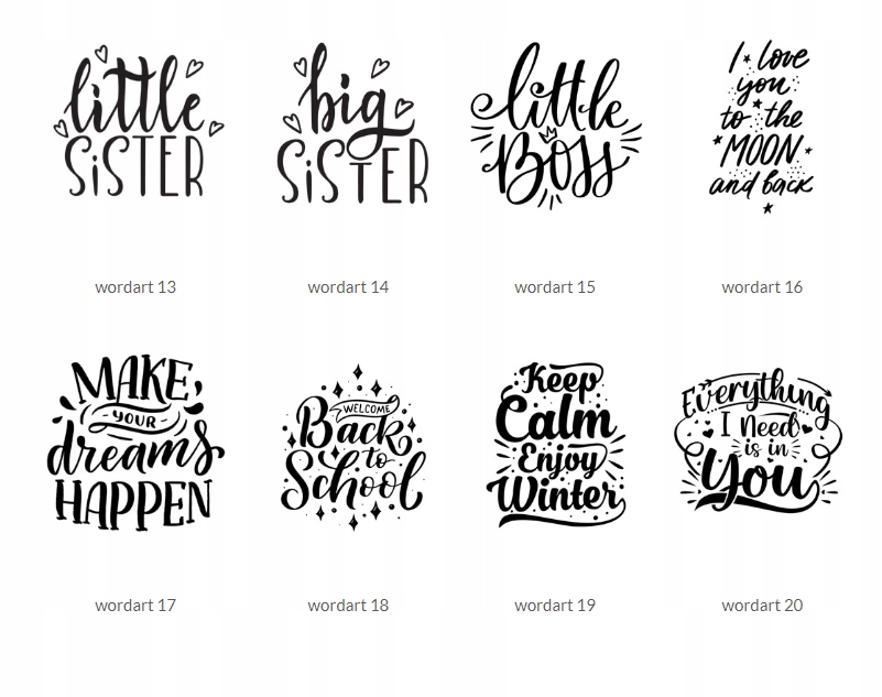 Под каждым узором или в месте, отведенном для текста, мы можем разместить любую надпись одним из доступных шрифтов.