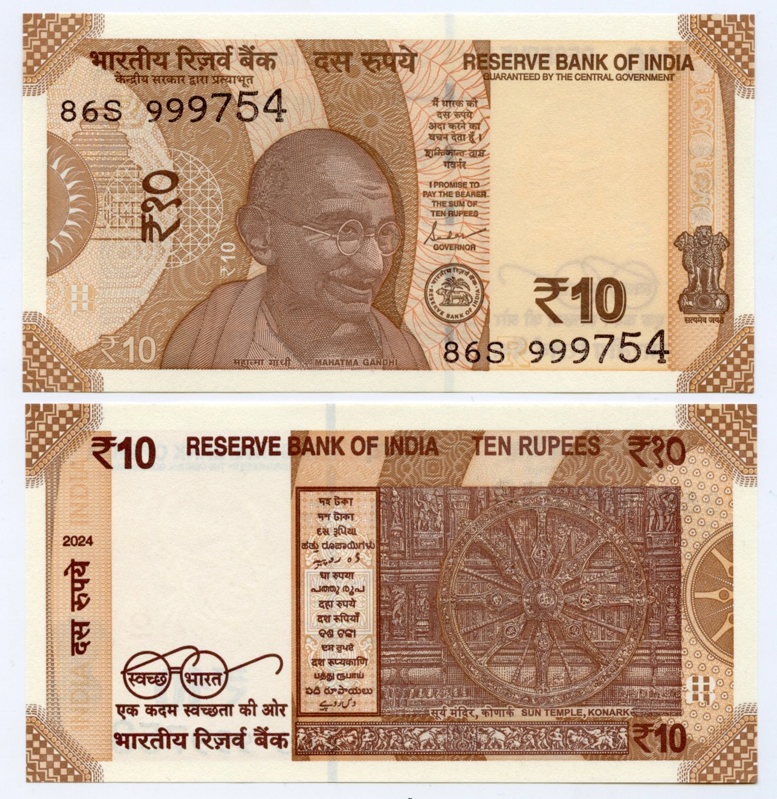 Индия 10 Rupii 2024 P-W 109 UNC Littera R Mahatma Gandhi