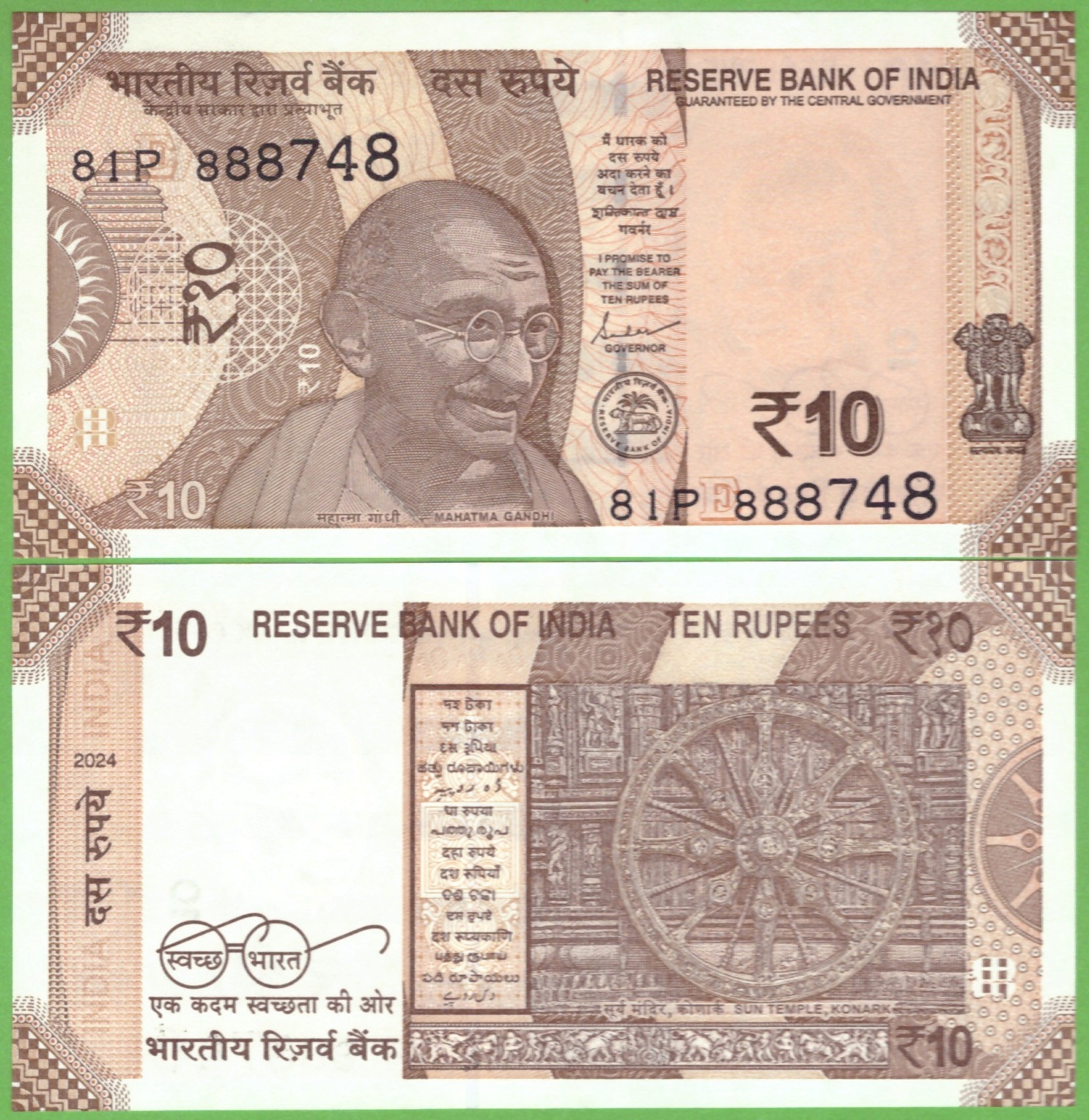 Индия 10 рупий 2024 E P-109 UNC Последнее издание