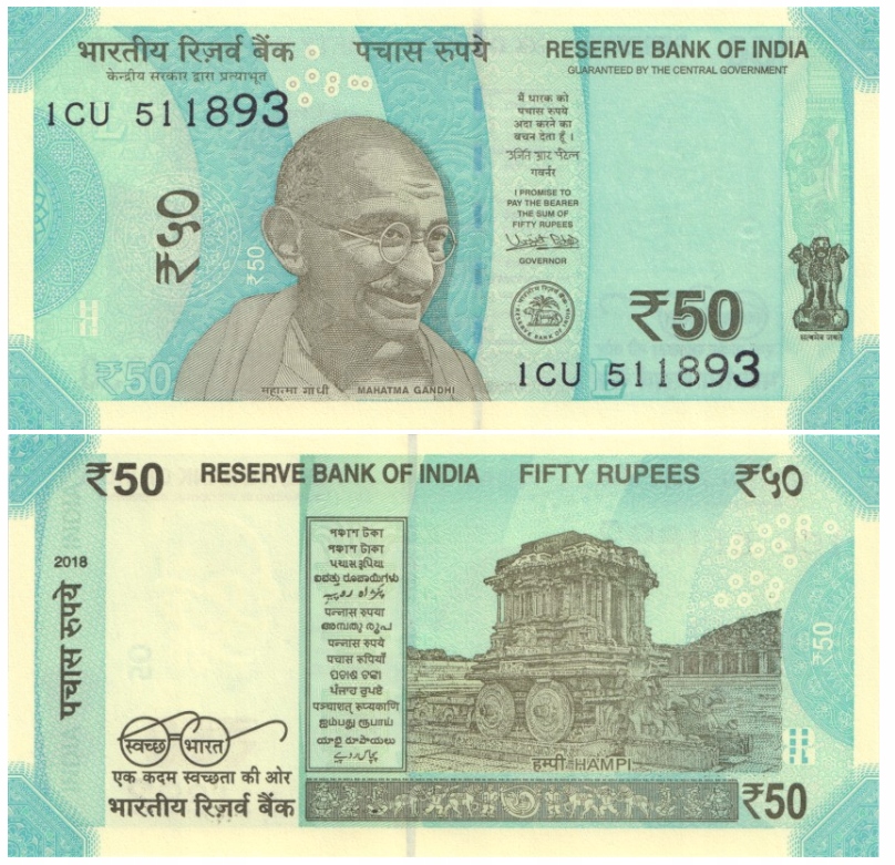 Индия 2018 50 РУПИЙ UNC P111e.Буква L......5186