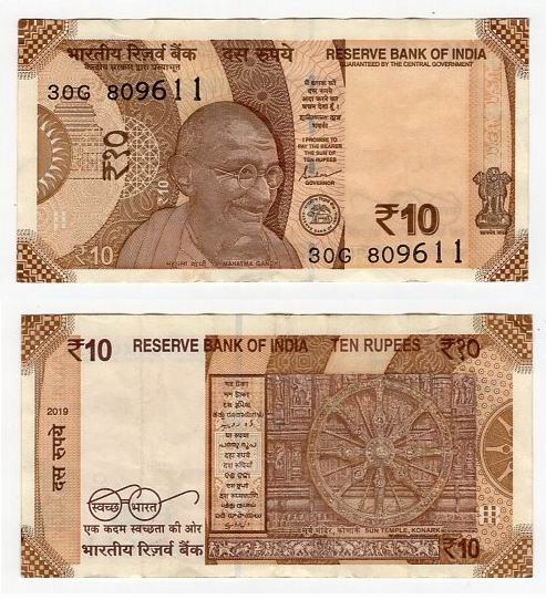 Индия 2019 10 рупий