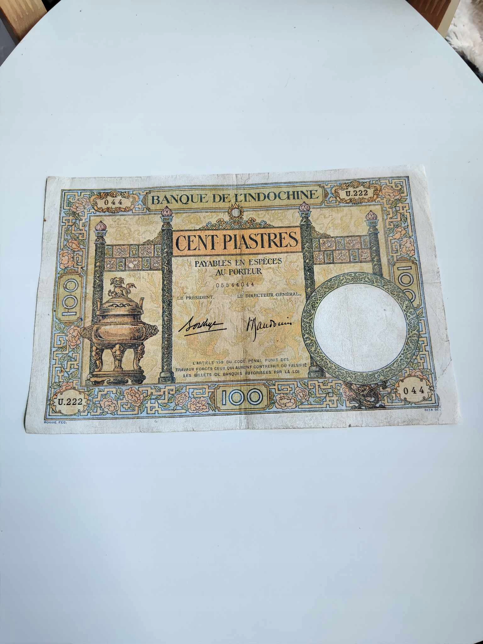 Indochiny - 100 Piastrów - bardzo rzadki