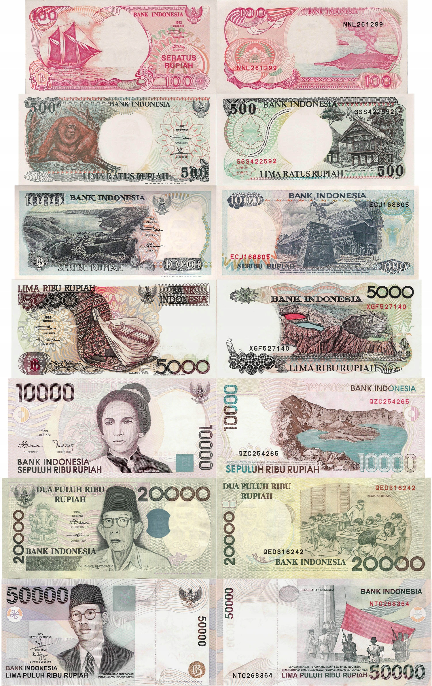 Indonezja zestaw 100+500+1000+5000+ 10000+20000+50000 rupiah P.127-139 UNC