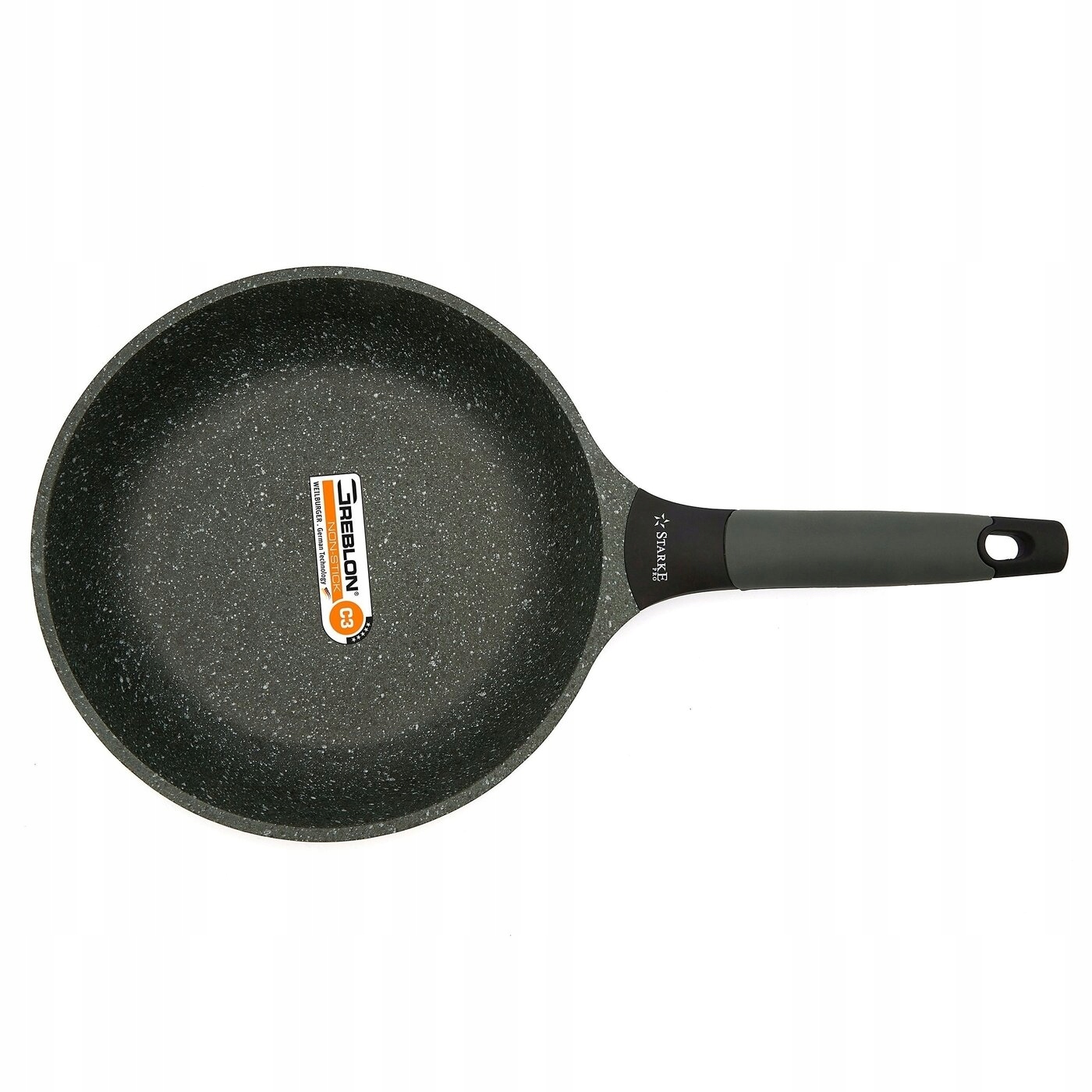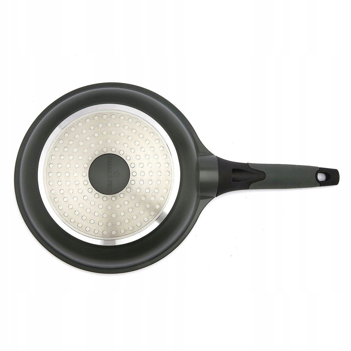 Универсальные мраморные индукционные сковороды Starke Pro Viridi 20/24/28 см изготовлены из алюминия. Для их создания использовалась технология гомогенного литья под давлением. Благодаря этому они идеально сбалансированы и очень прочны с точки зрения механических и термических свойств. Повышенную долговечность обеспечивает также термостойкая силиконовая краска, покрывающая корпуса снаружи. Внутренняя часть сковороды отделана мраморным покрытием GREBLON C3, обогащенным гранитными частицами. Его высокое качество, отличная адгезия, твердость и трехслойная структура разработаны немецкой компанией WEILBURGER. Он также имеет маркировку PFOA Free. Энергоэффективность набора сковород обеспечивает индукционное дно толщиной 4,5 мм. Благодаря этому вы можете использовать 3 мраморные сковороды Viridi на любой плите. Антипригарное покрытие также позволяет жарить с небольшим количеством жира и упрощает уход. Она выдерживает до 8000 циклов истирания, что в четыре раза больше, чем у обычных сковородок с антипригарным покрытием, доступных на рынке. Переносить и пользоваться посудой облегчают мягкие на ощупь ручки, которые не нагреваются и не выскальзывают из рук. С ними вы создадите свой собственный набор кухонной утвари серии Viridi — для домашнего использования ее рекомендует Петр Кучарский, лично проверивший возможности и качество мраморных сковородок. Гарантия на изделие составляет 5 лет. Кроме того, вы сможете точно дозировать сыпучие и жидкие ингредиенты, используя 5 кухонных мерных стаканчиков (1,25–15 мл). Набор позволит вам долгие годы правильно обустраивать домашнюю кухню.
