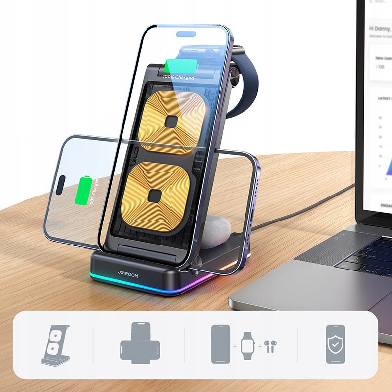 ІНДУКЦІЙНИЙ ЗАРЯДНИЙ ПРИСТРІЙ JOYROOM 3в1 ПІДСТАВКА ПІДСТАВКА