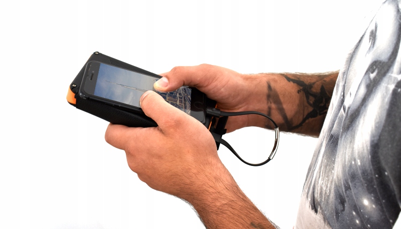 >Благодаря встроенной ручке (петле) разработанный павербанк можно прикрепить к рюкзаку и заряжать его, например, в походе.