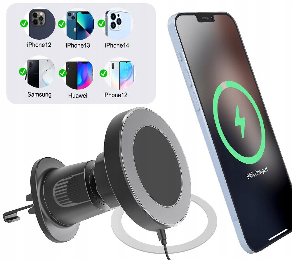 Держатель MagSafe O-14 W универсален и заряжает телефоны, оснащенные системой индуктивной зарядки, независимо от их модели и производителя. .