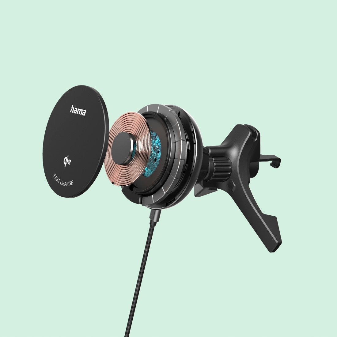 Qi2: Индукционное зарядное устройство работает со всеми оригинальными продуктами Apple Magsafe и мобильным телефона Hama с магнитным кольцом, а также со всеми устройствами, совместимыми со стандартным Qi2 STANDAR