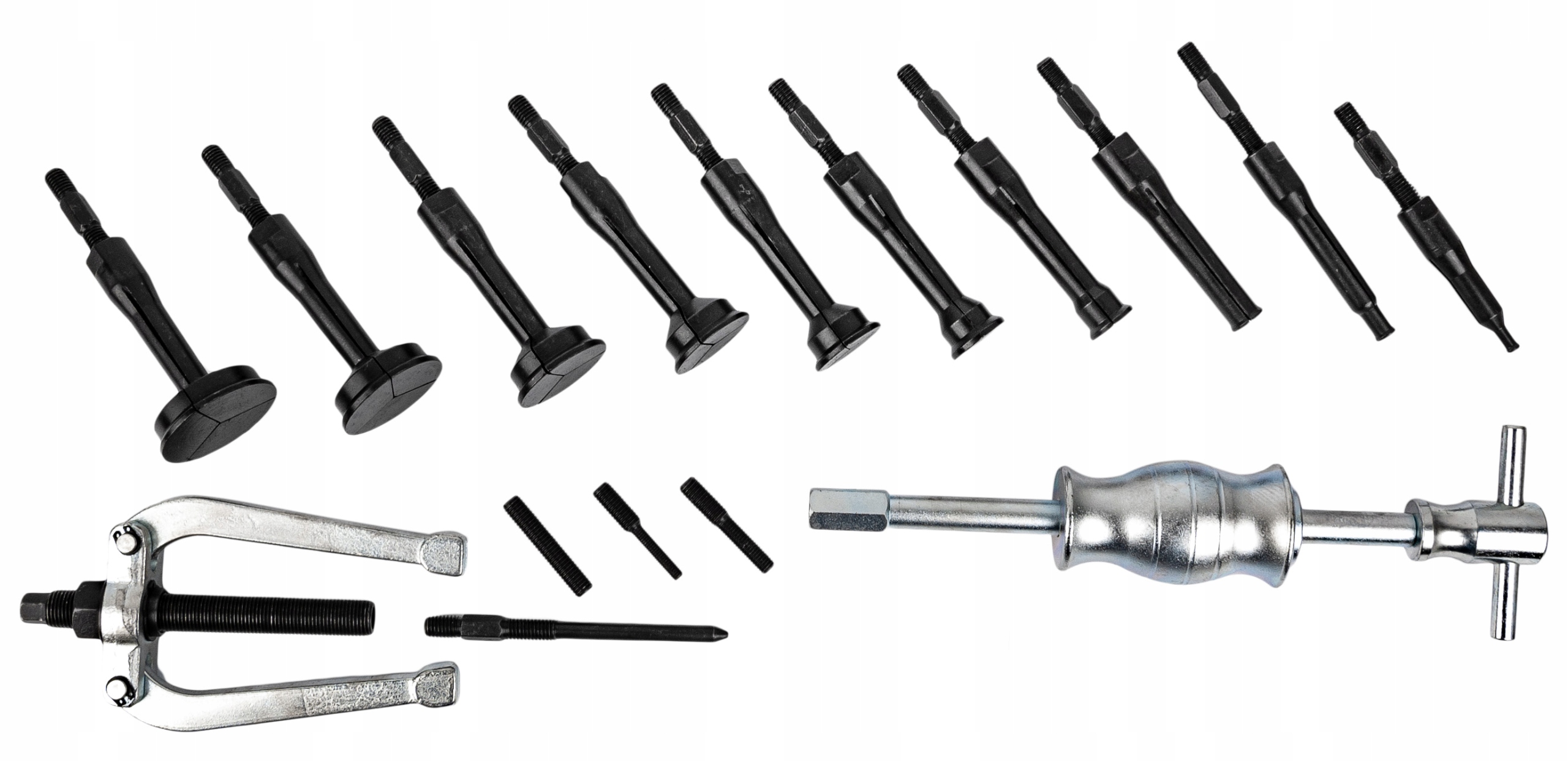Набор предназначен для снятия подшипников, наружных колец и втулок диаметром от 8 до 58 мм
