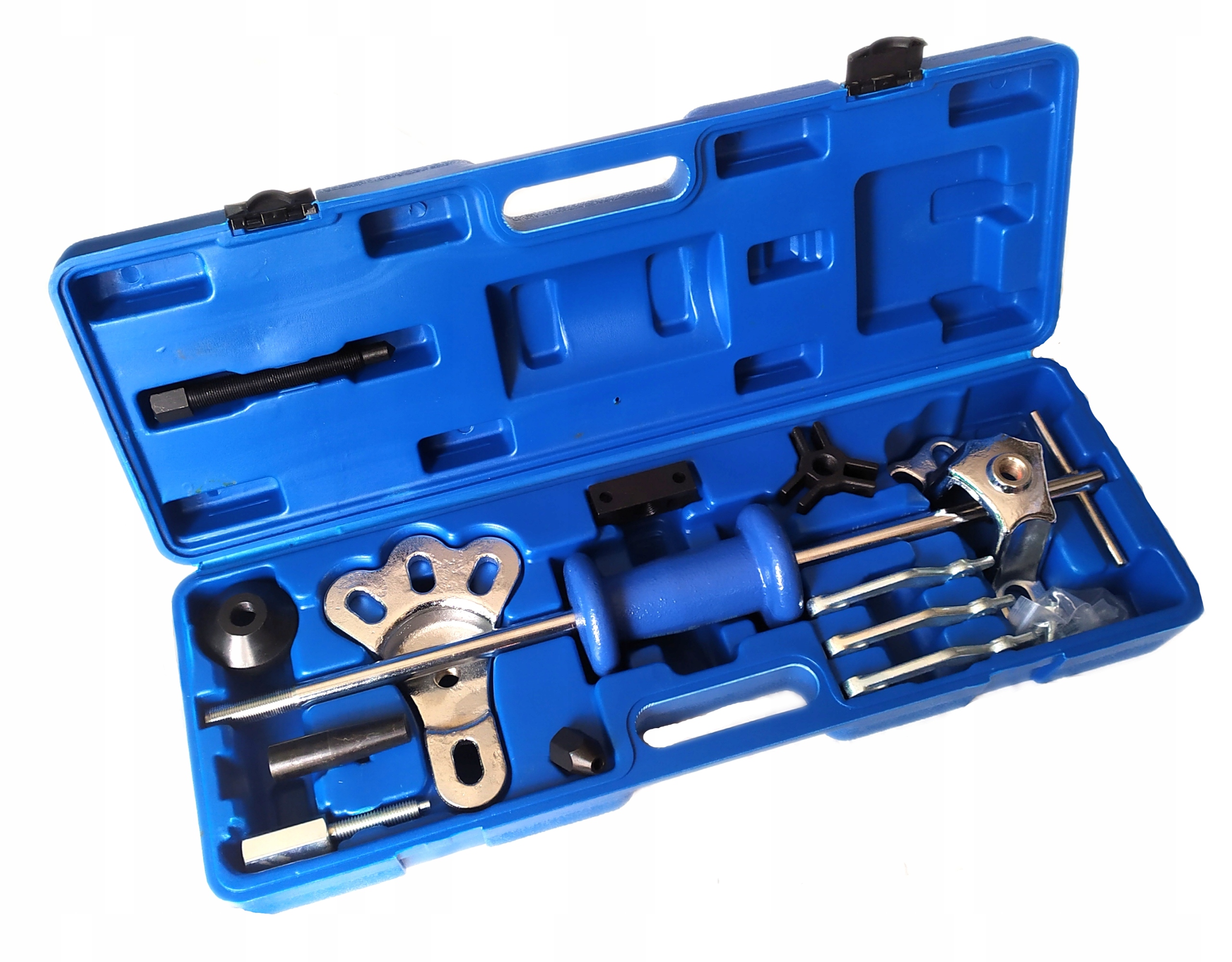 Набор инструментов для безопасной разборки ступиц, подшипников и шестерен. Набор состоит из 16 элементов, помещенных в удобный чемоданчик. Элементы изготовлены из высококачественной стали.
